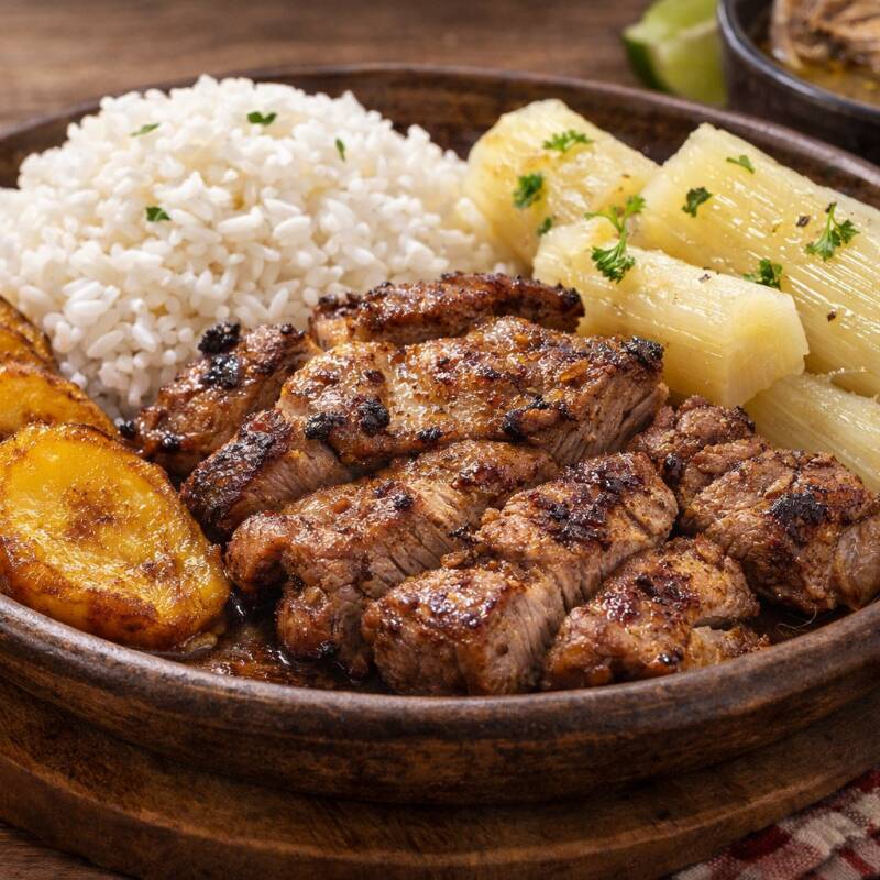 Vaquerito de Lomo de Cerdo+Arroz+Yuca+Tajada+Sopa