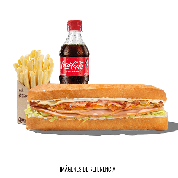 1 sándwich Especial o Hawaiano (21cm) + (1) Papas pequeñas + 1 Coca Cola 250ml