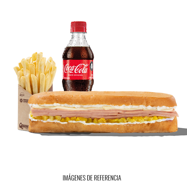 1 sándwich Especial o Hawaiano (21cm) + (1) Papas pequeñas + 1 Coca Cola 250ml