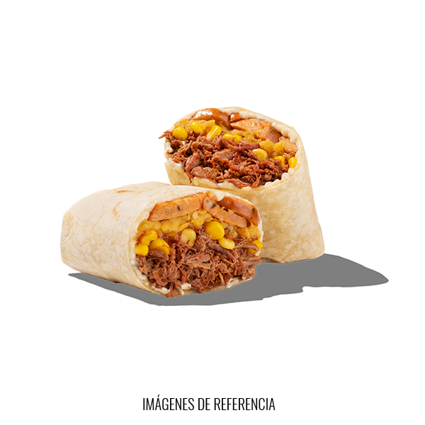 Deliciosa Carne de Costilla de Cerdo Desmechada, Frijoles Negros, Maíz tierno, Queso mozzarella, Guacamole, Pico de gallo, Lechuga Batavia.