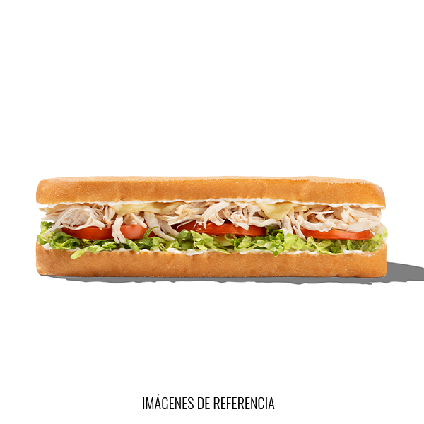Pechuga de pollo desmechada, tomate, queso mozzarella, lechuga y mayonesa.