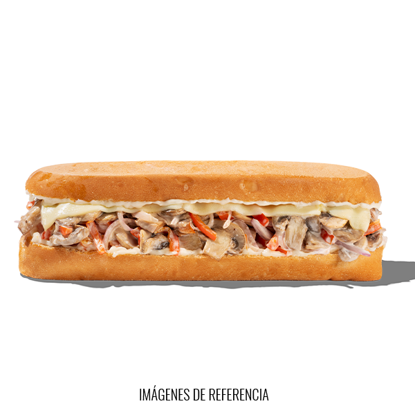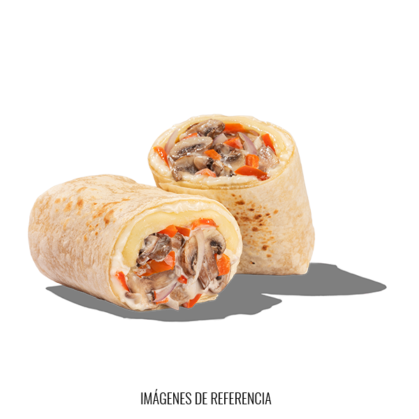 Champiñones frescos, pimentón rojo, cebolla roja, queso mozzarella y salsa Qbano.