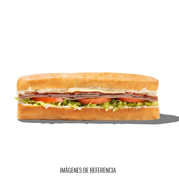 Roast Beef, tomate, queso mozzarella, lechuga, salsa BBQ y salsa Qbano