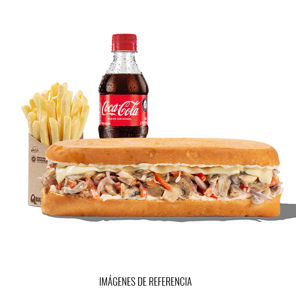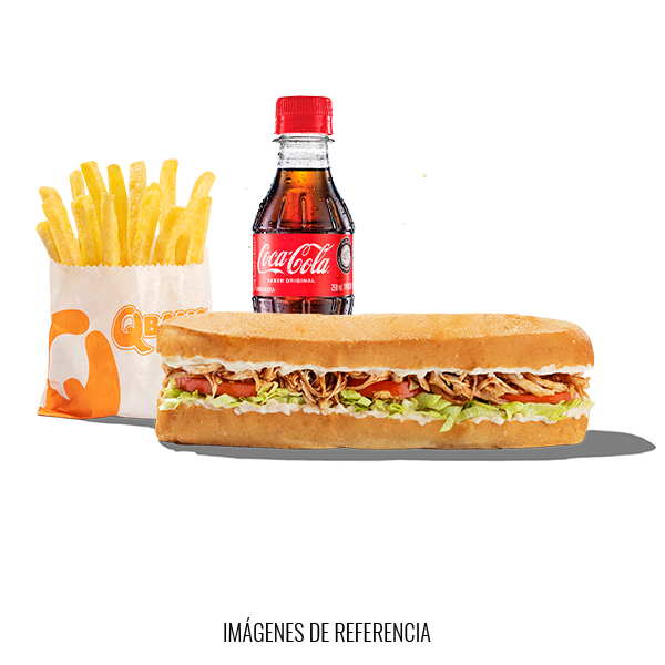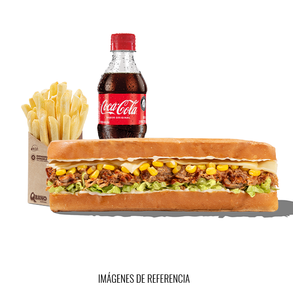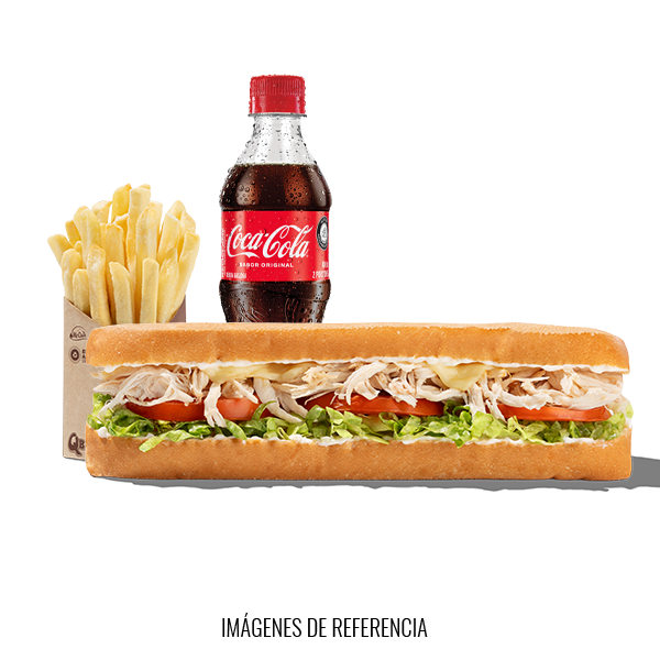 1 Sándwich Personal 21cm Pollo Bbq + 1 Papas Pequeñas + Coca cola