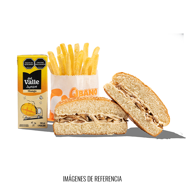 Qbanito Pollo & Champiñones + papa pequeña + coca cola 250ml o jugo cajita + obsequio