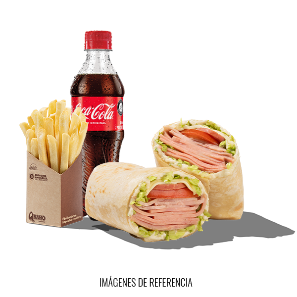 2 Sandwiches a eleccion 17 cm + 2 Papas pequeñas + 2 Gaseosas Coca Cola 400ml.