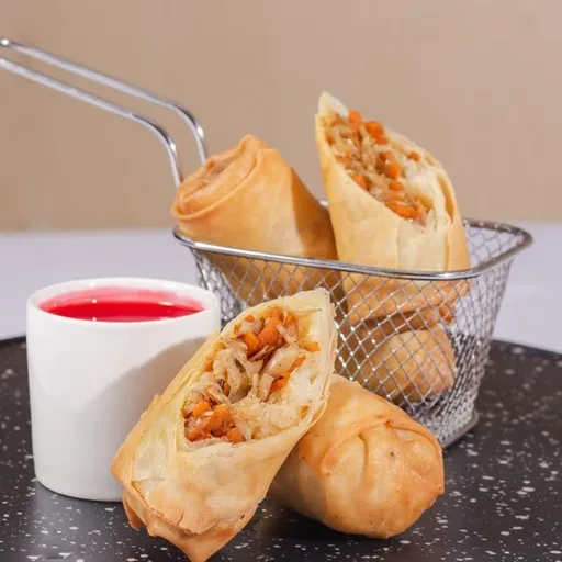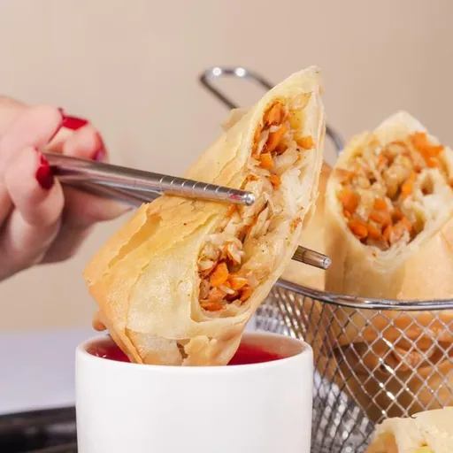 Lumpias rellenas con vegetales acompañadas con salsa agridulce de la casa.