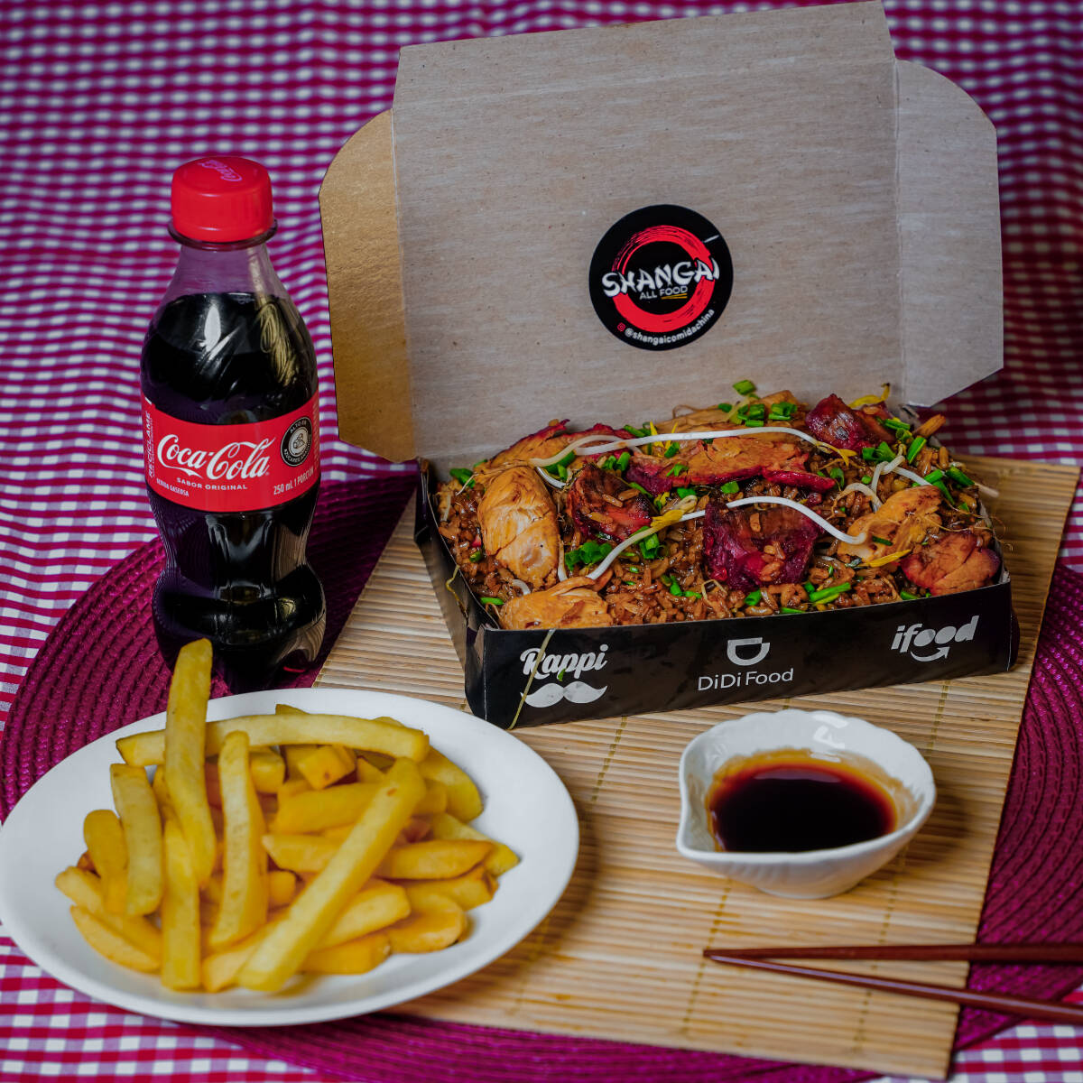 ARROZ ORIENTAL + LO MEIN CON CERDO + PAPAS A LA FRANCESA + BEBIDA 400ML