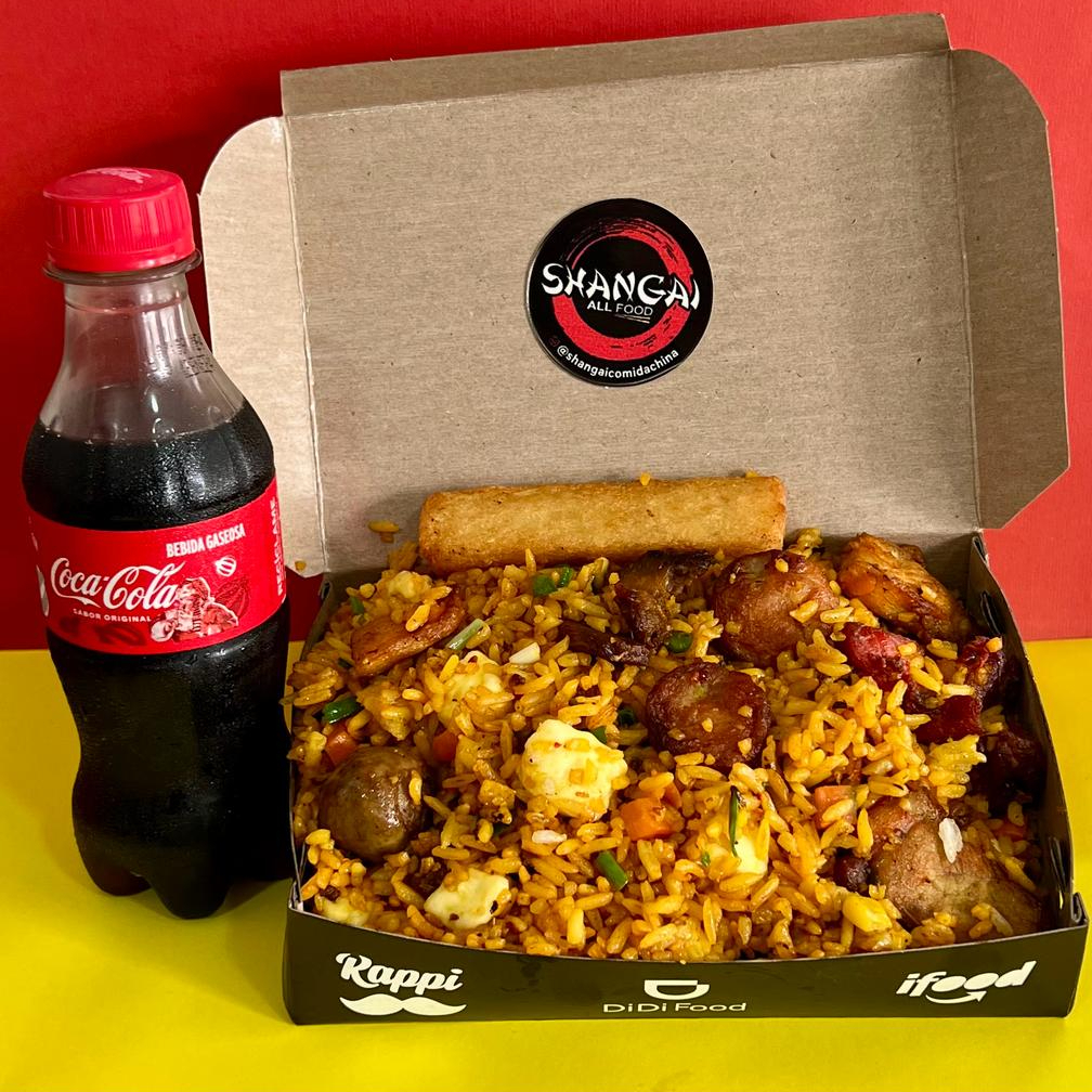 Arroz Especial Shangai Familiar, lumpias especiales por dos unidades y CocaCola 1.5 LTS