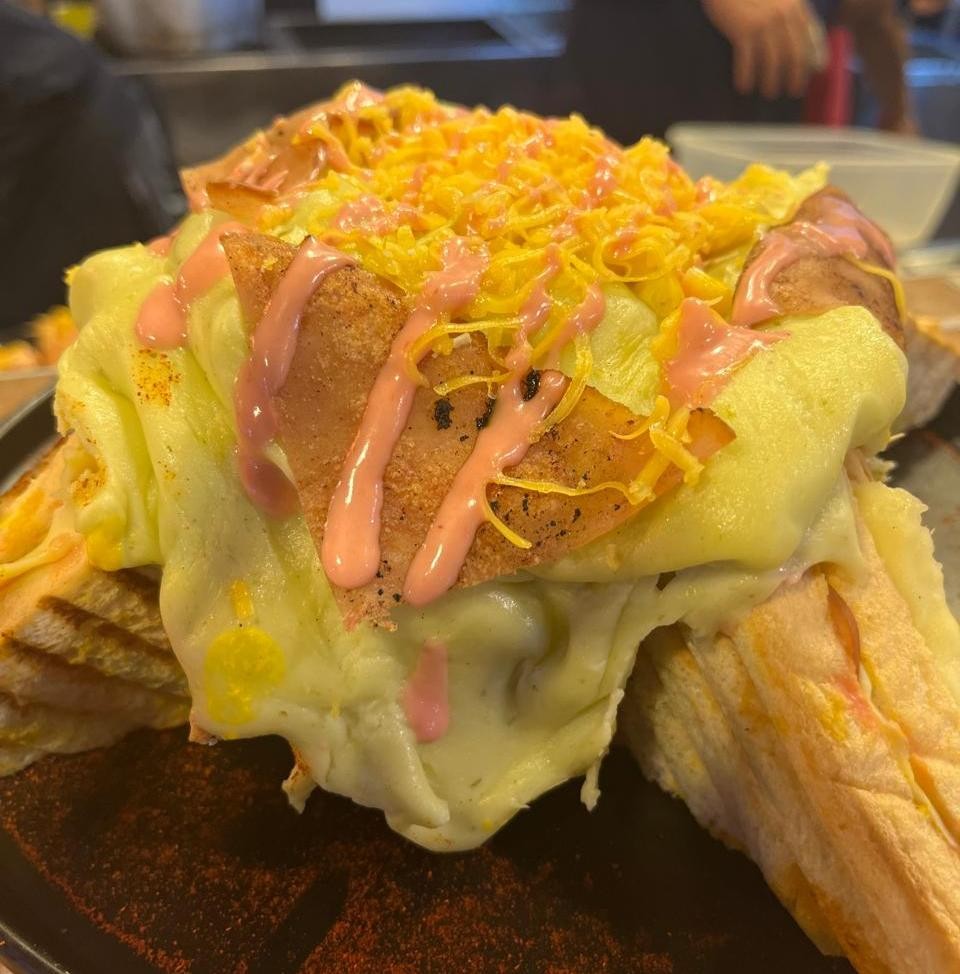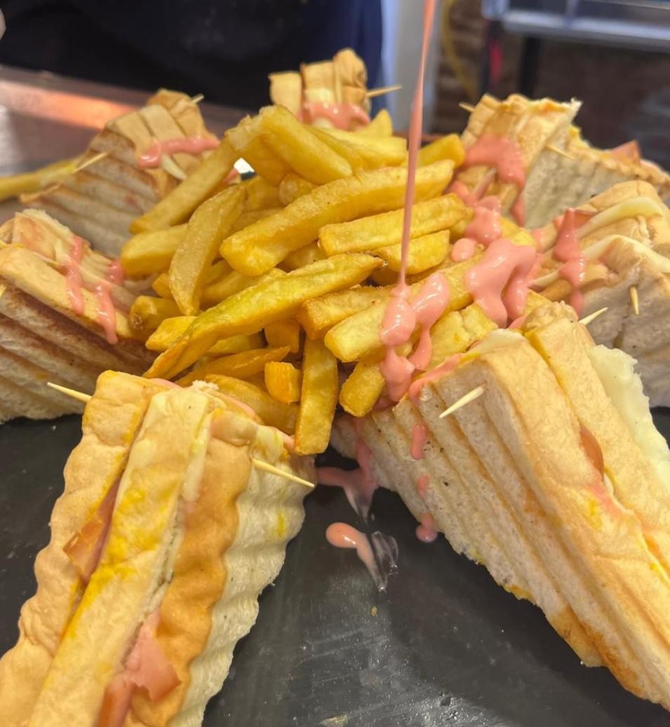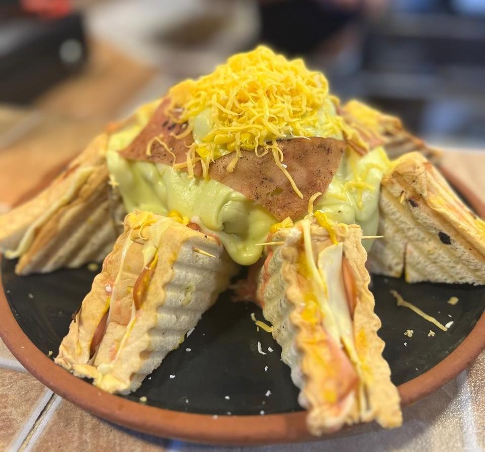 Deliciosos panes triangulares crujientes, bañados en nuestra deliciosa salsa rosada, tártara y salsa de tomate, acompañados de lechuga, tomate, cebolla, jamón premium y queso americano, junto a un mix de papas francesas, pollo grill, cerdo grill, carne grill, con tocineta, gratinados en mozzarella y queso holandés rallado.