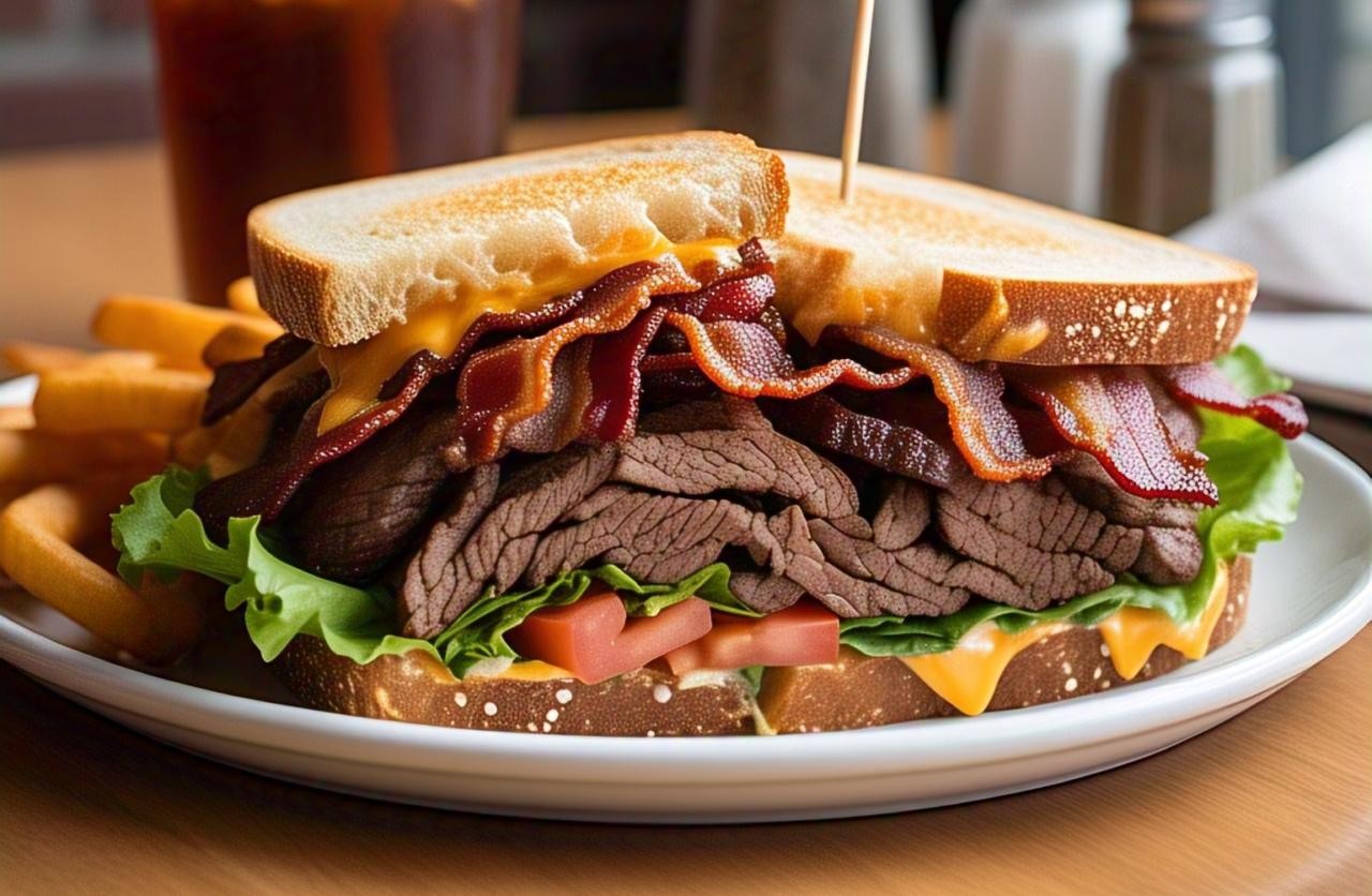 Delicioso pan triangular crujiente, bañado en nuestra deliciosa salsa rosada, tártara y salsa de tomate, acompañado de lechuga, tomate, cebolla, jamón premium y queso americano, junto a un mix de papas francesas y queso costeño.