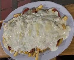 Papas francesas, chorizo, butifarras, manguera, mozzarella y chongo.