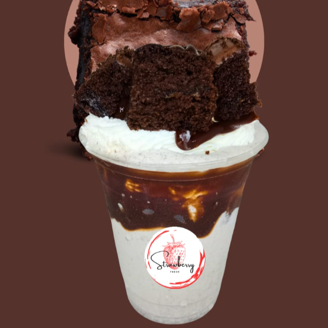 ¡El paraíso en cada cucharada! Un festín de fresas frescas y brownie al centro, con salsas variadas. Todo cubierto de suave crema chantilly, más fresas, barquillo y trozos de brownie. ¡Simplemente irresistible!