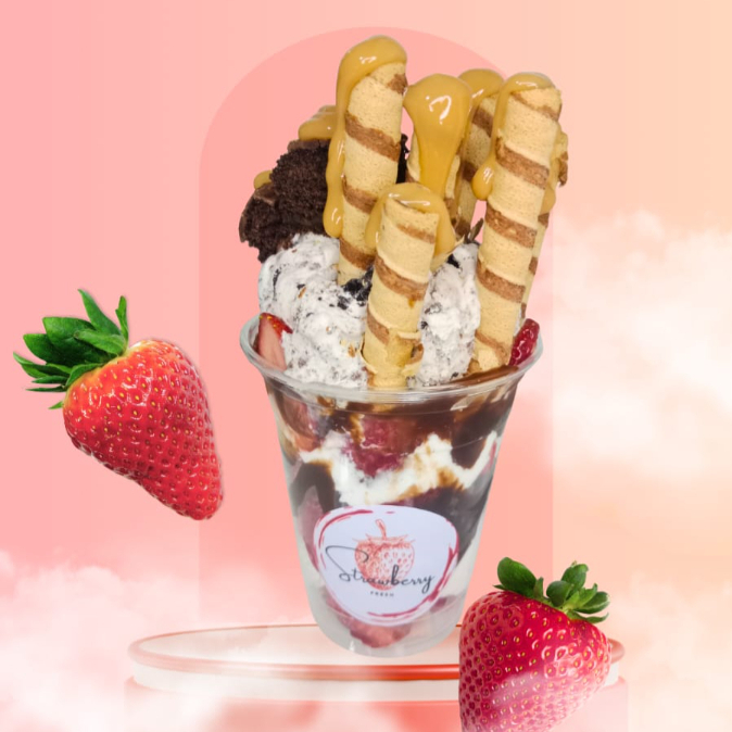 ¡Prepárate para una experiencia inolvidable! Nuestra Explosión Suprema de Fresas con Crema es un festín para tus sentidos. Disfruta de la frescura de nuestras fresas más jugosas, combinadas con suave crema chantilly. Pero eso no es todo: hemos elevado este clásico con trozos de decadente brownie, un crujiente barquillo y tu helado favorito. Para personalizarla a tu gusto