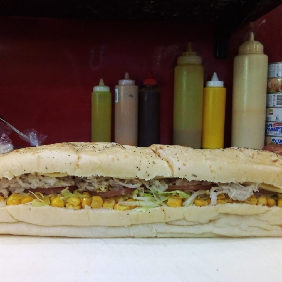 Jamón, salami, lomito, queso mozzarella, tomate, cebolla, lechuga, salsas subs y BBQ.