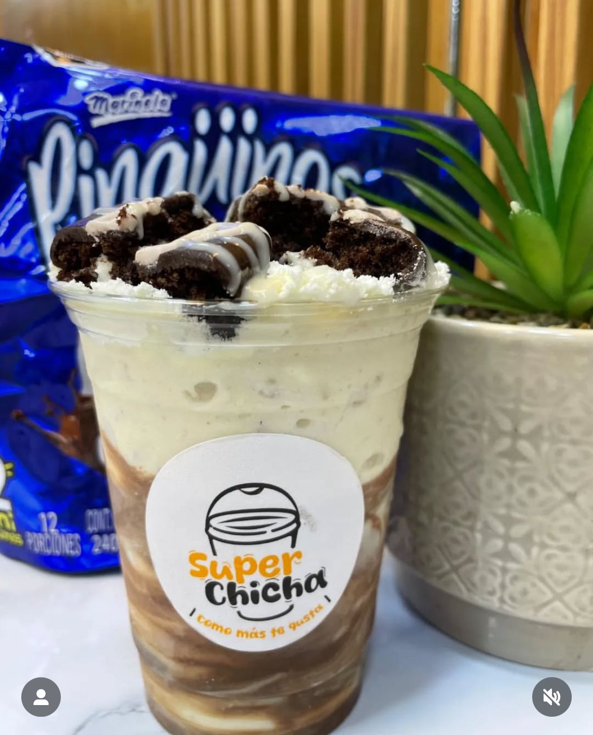 Chicha cremosa con muffin de pinguinito, leche en polvo y salsa de nucita, tamaño a elegir.