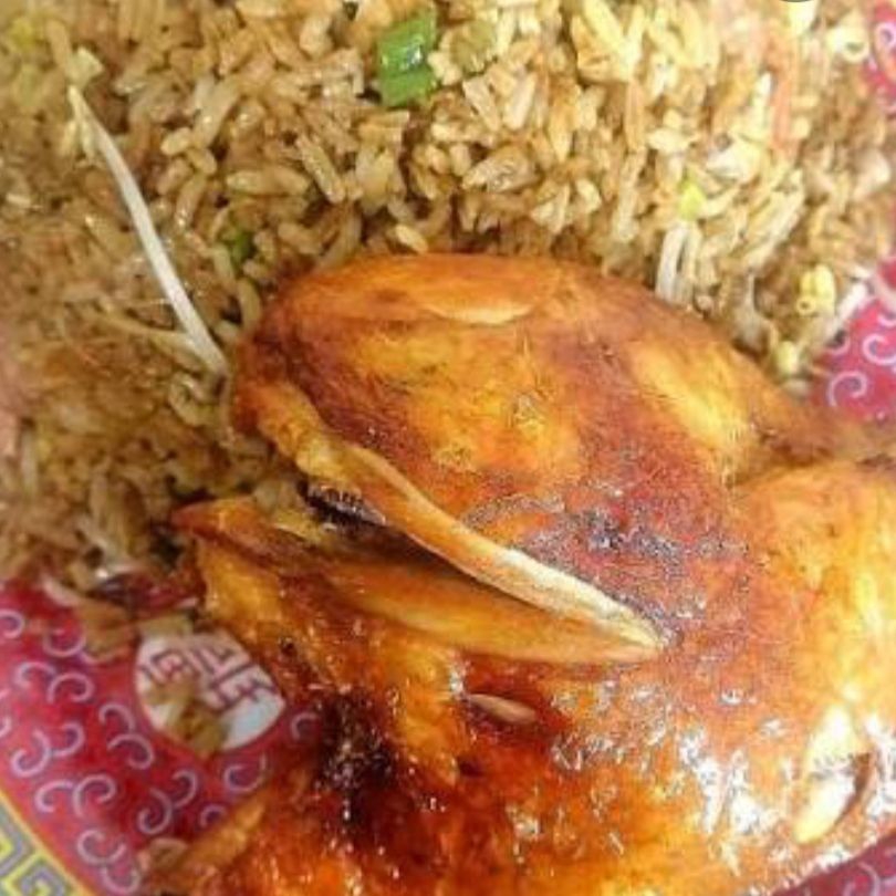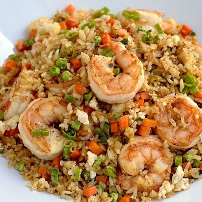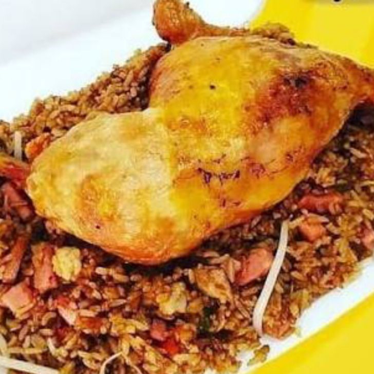 Arroz frito estilo oriental con pollo, cerdo, camarón y una porción extra de pollo.