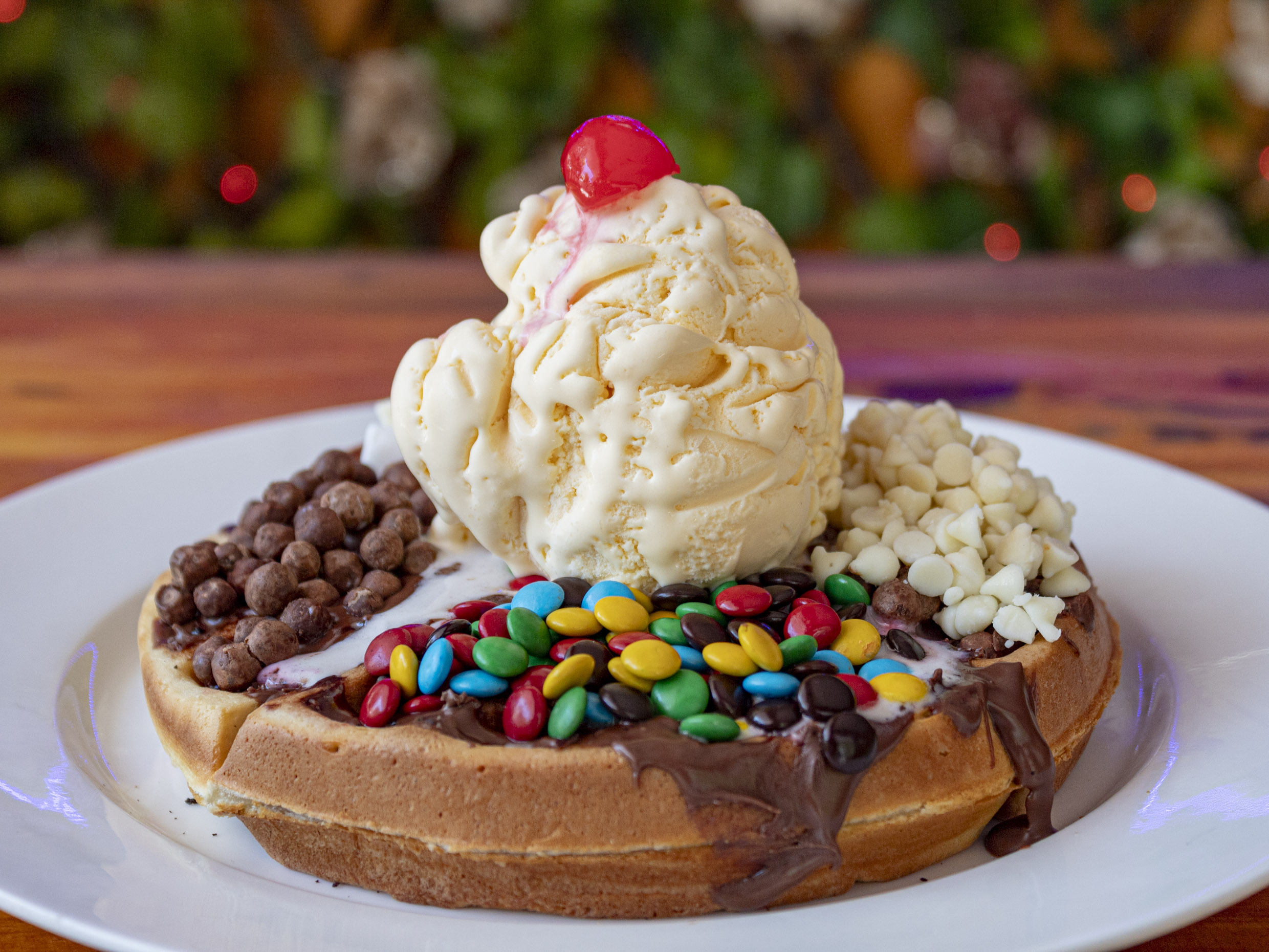 Nutella, barquillos, chips de chocolates masmelos, m&m, helados, cerezas