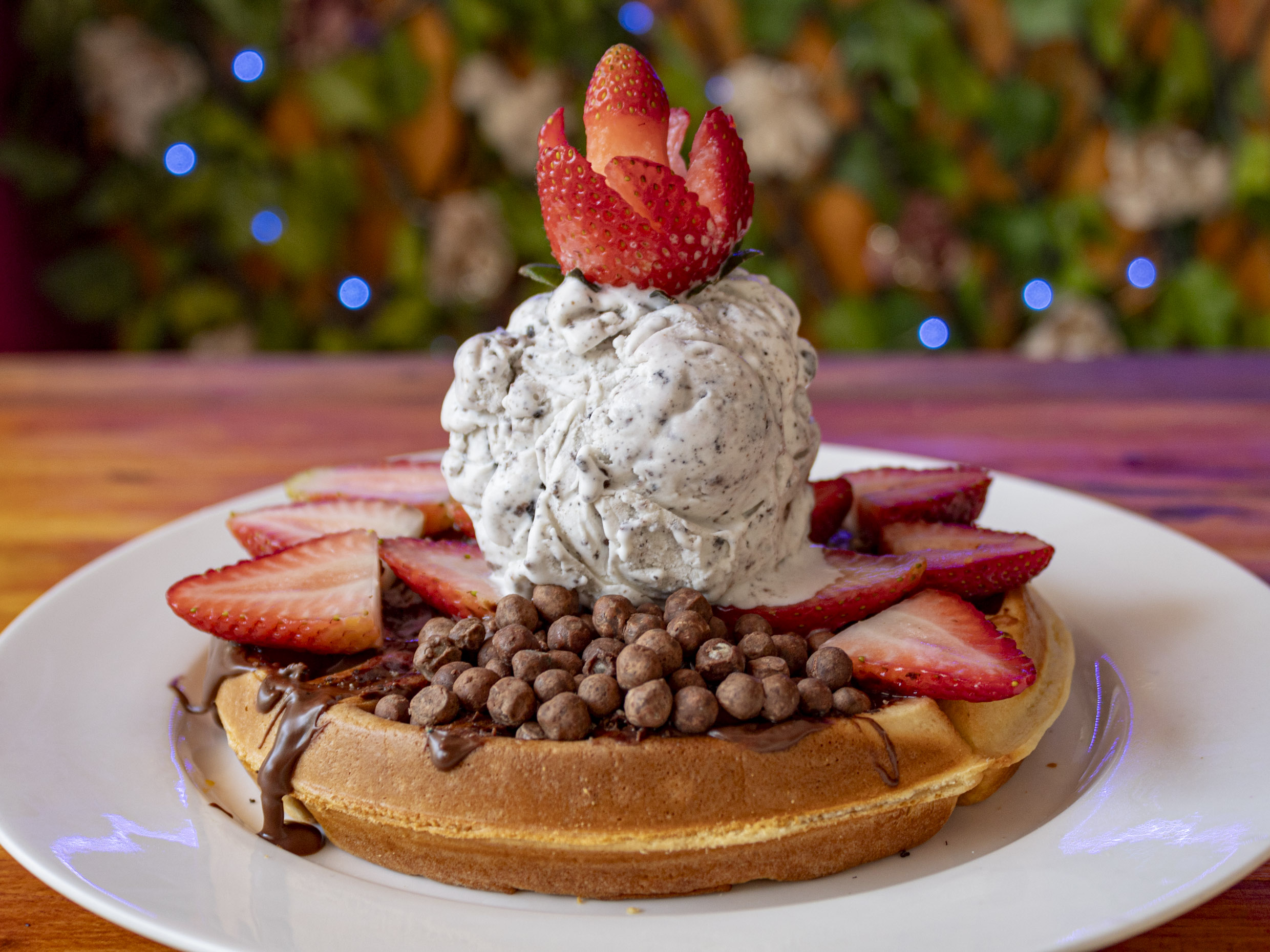 Fresas cortadas , crema casera , 2 toppings & 1 salsa favorita.