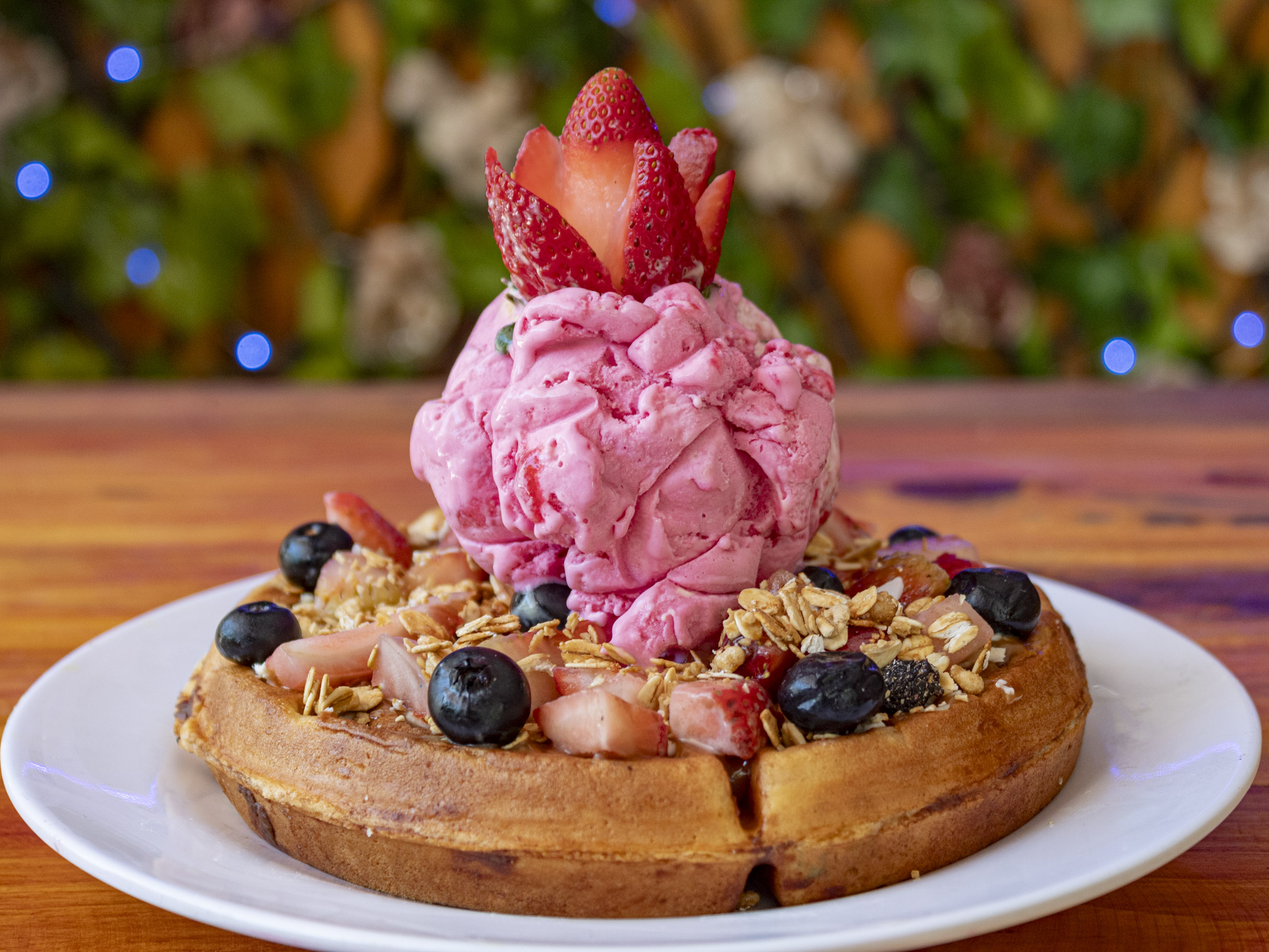 Fresas, mango, manzana verde, manzana roja, kiwi, uvas, granola, yogurt, helado
