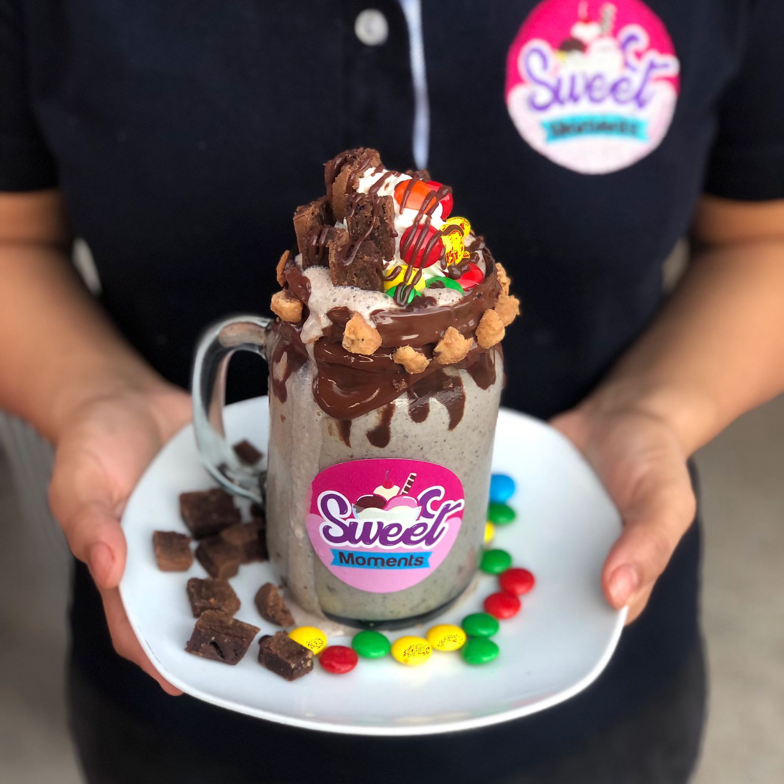 Base de helado, Nutella, grajeas de colores, galletas de colores, galletas oreo, chips de chocolate, chocolatinas jet, crema de la casa salsa hersheys, barquillso
