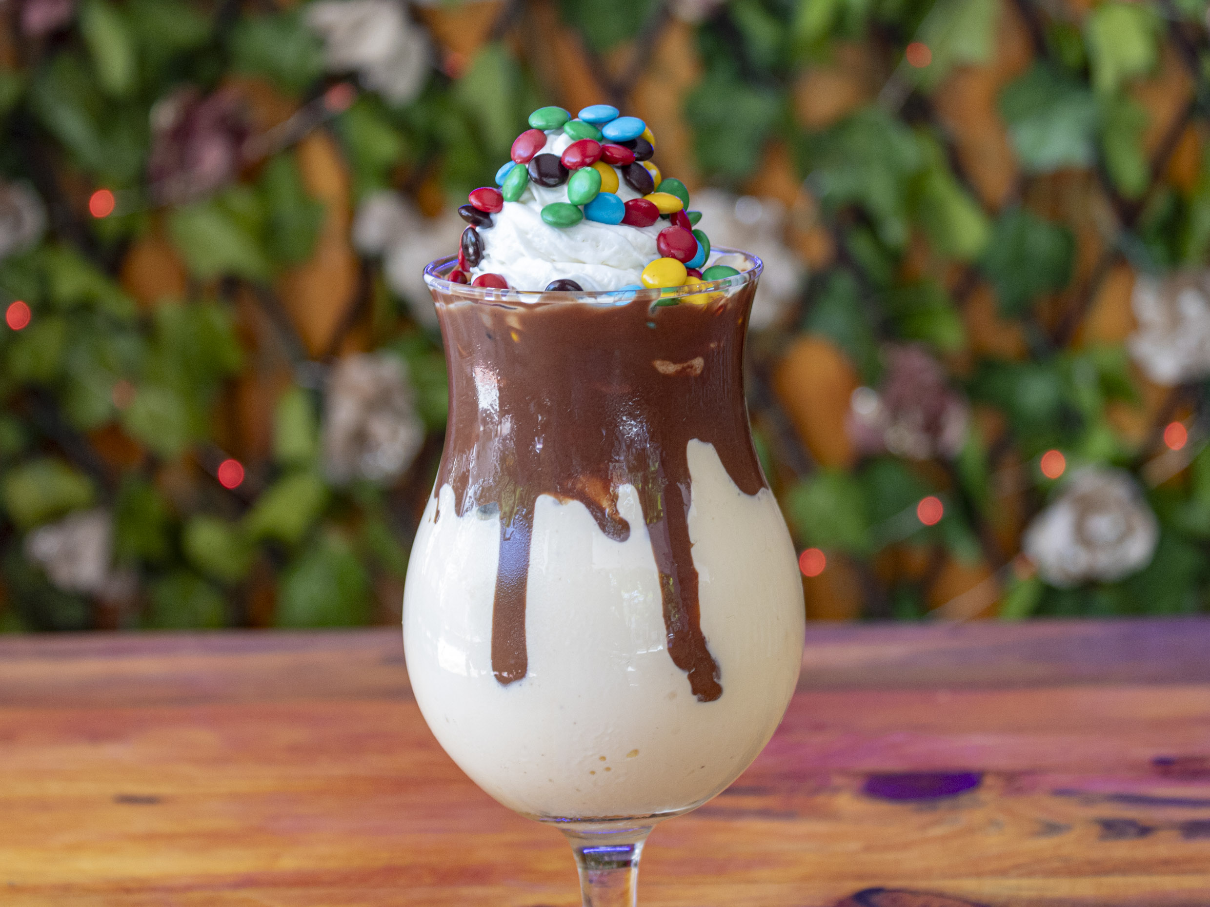 3 bolas de helado , m&m , salsa de tu preferencia y galleta wafer.