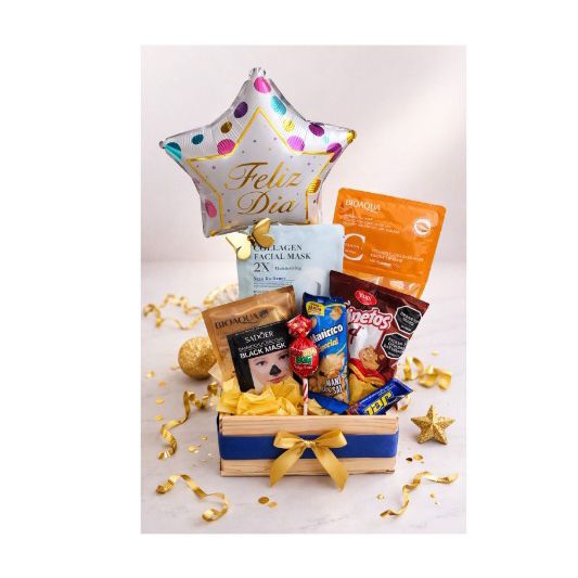 Combina lo mejor entre dulces, snacks y productos de cuidado personal, creando una experiencia especial para consentir y celebrar.incluye cervezacorona,mani,oreo,masmelo,chocolatina,caramelos,mecato,mascarilla facial,puntos negros,colágeno de labios y ojeras,caja decorativa,globo y Topper.
