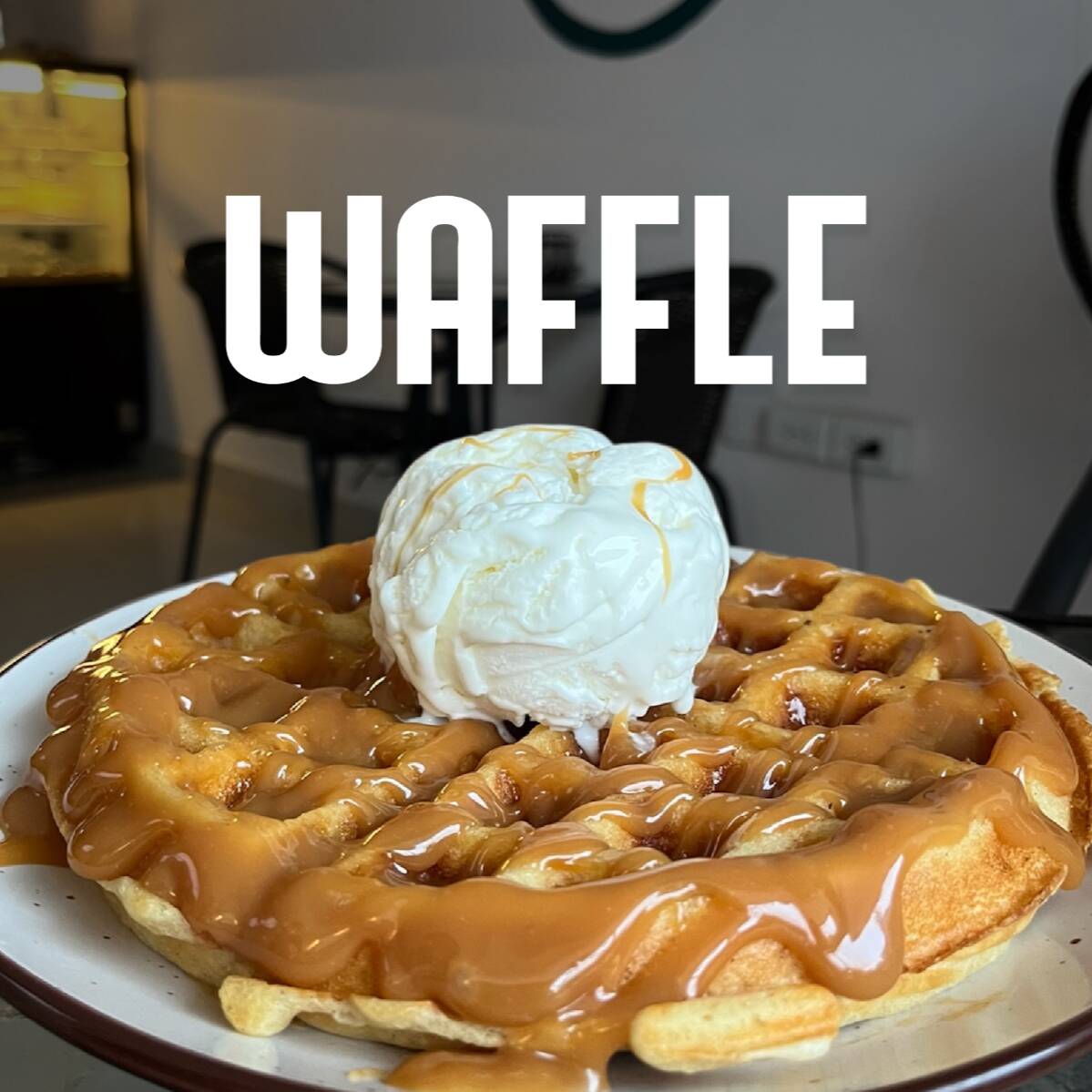 Esponjoso waffle con helado a eleccion y salsa de arequipe.