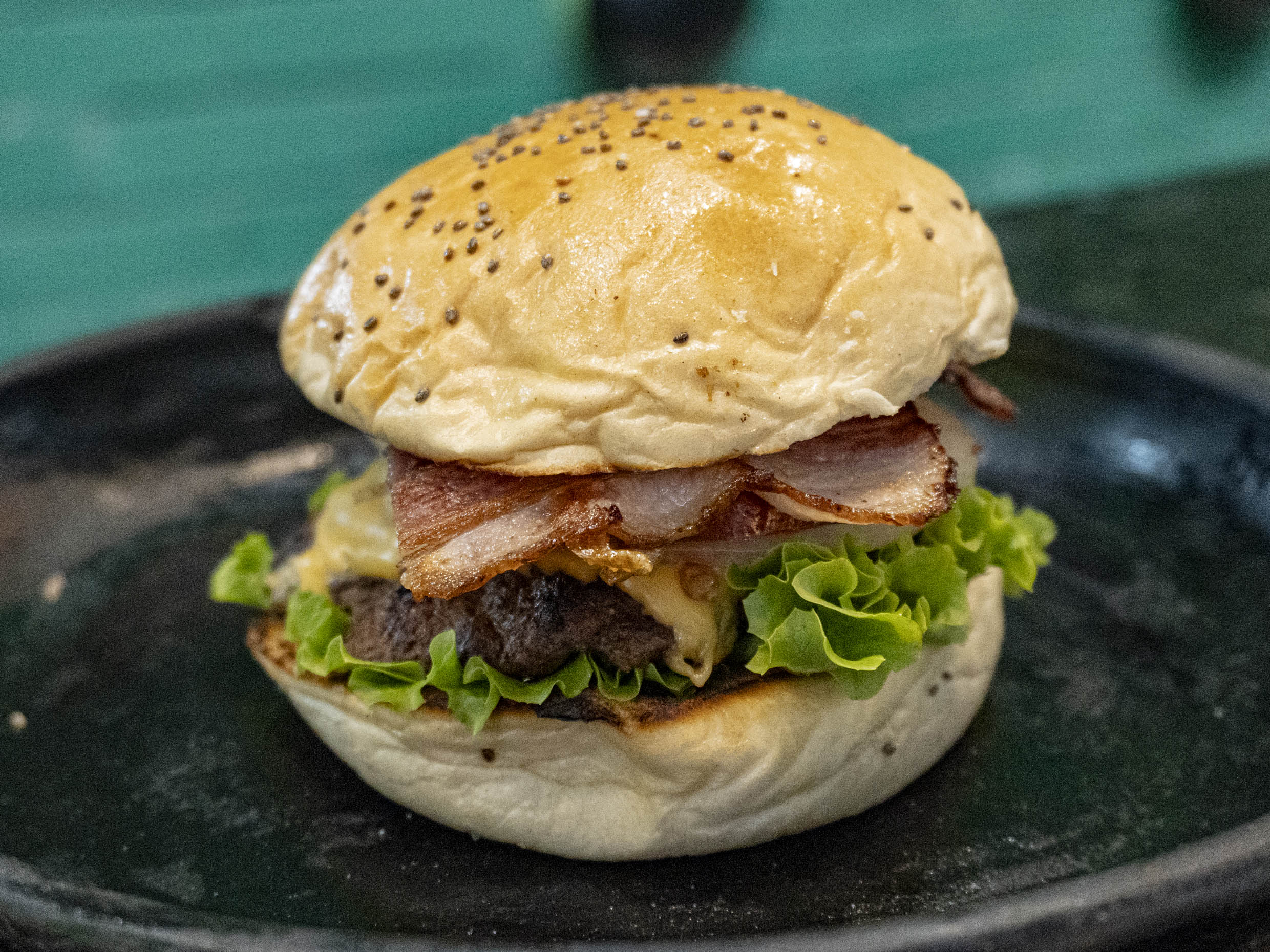 150 gr de carne de res, queso cheddar, pan brioche, lechuga romana, tomate, cebolla blanca, tocineta premium. acompañadas de papas a la francesa.