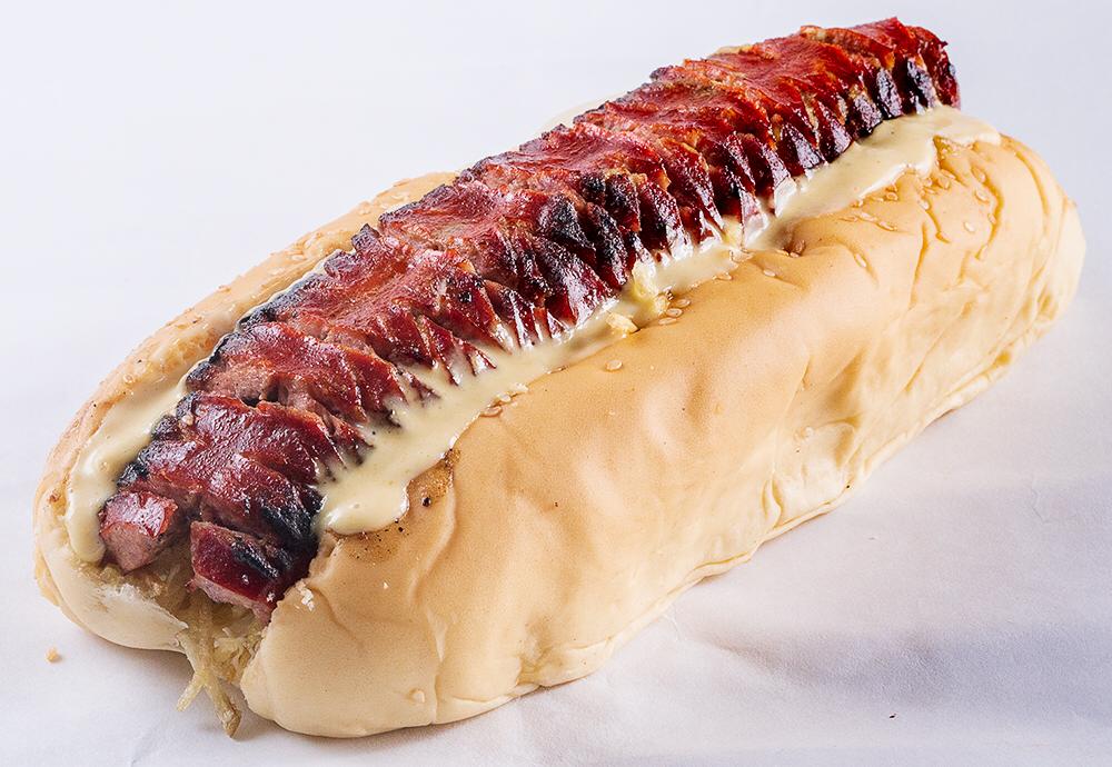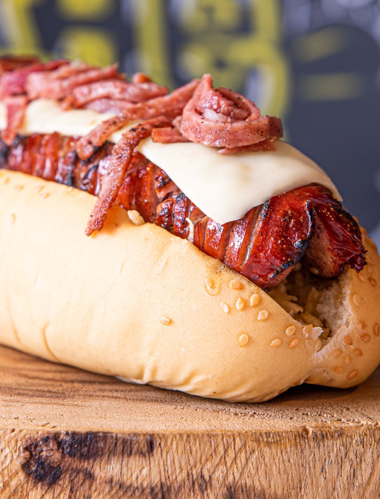 Pan Fresco, Salchicha Perro, Tocineta y salsa de piña