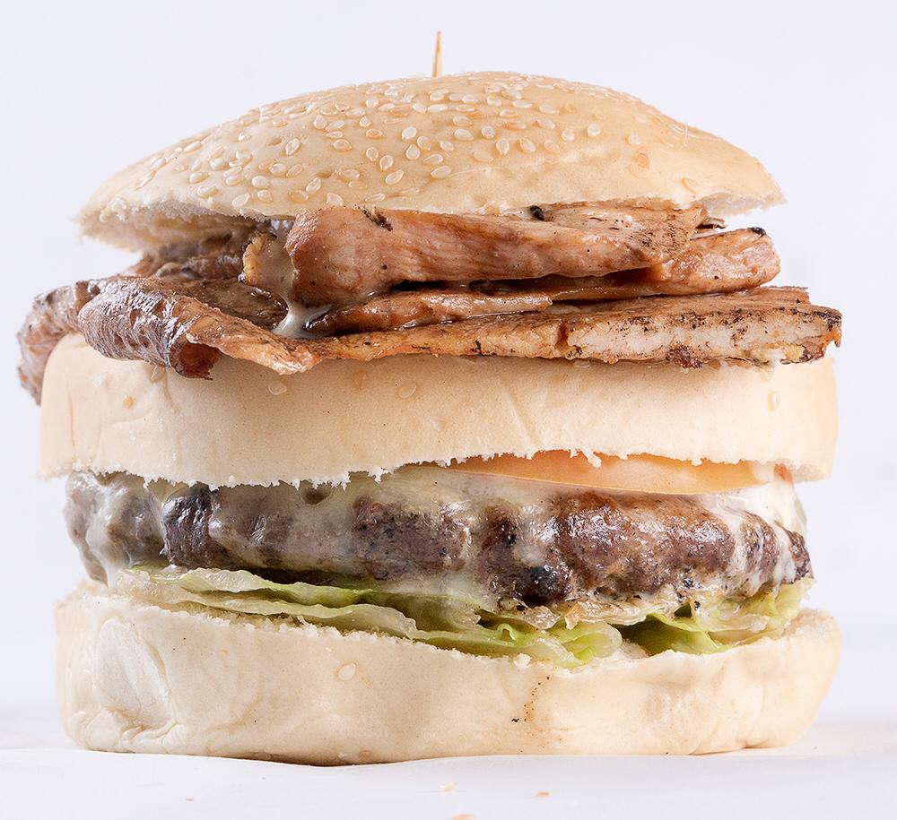 Mixta de Carne con Pechuga de pollo y doble queso mozzarella y verduras.