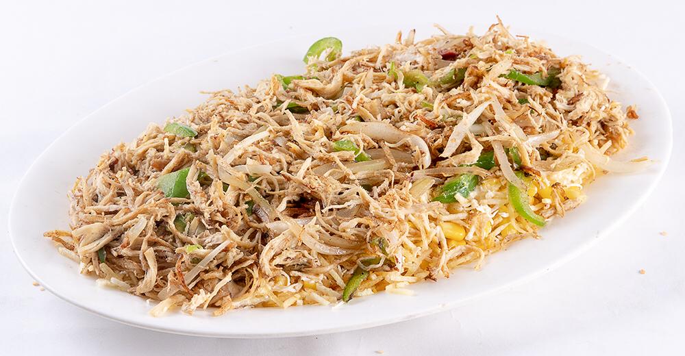 Pollo,queso Costeño, papita Chongo, Salsa Tartara, Maiz