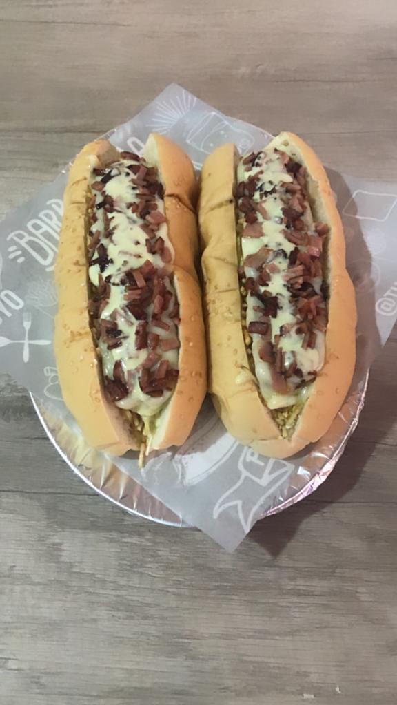 Pan Salchicha Suiza,Tocineta,Queso Costeño,papita chongo,queso mozarella,salsa tartara