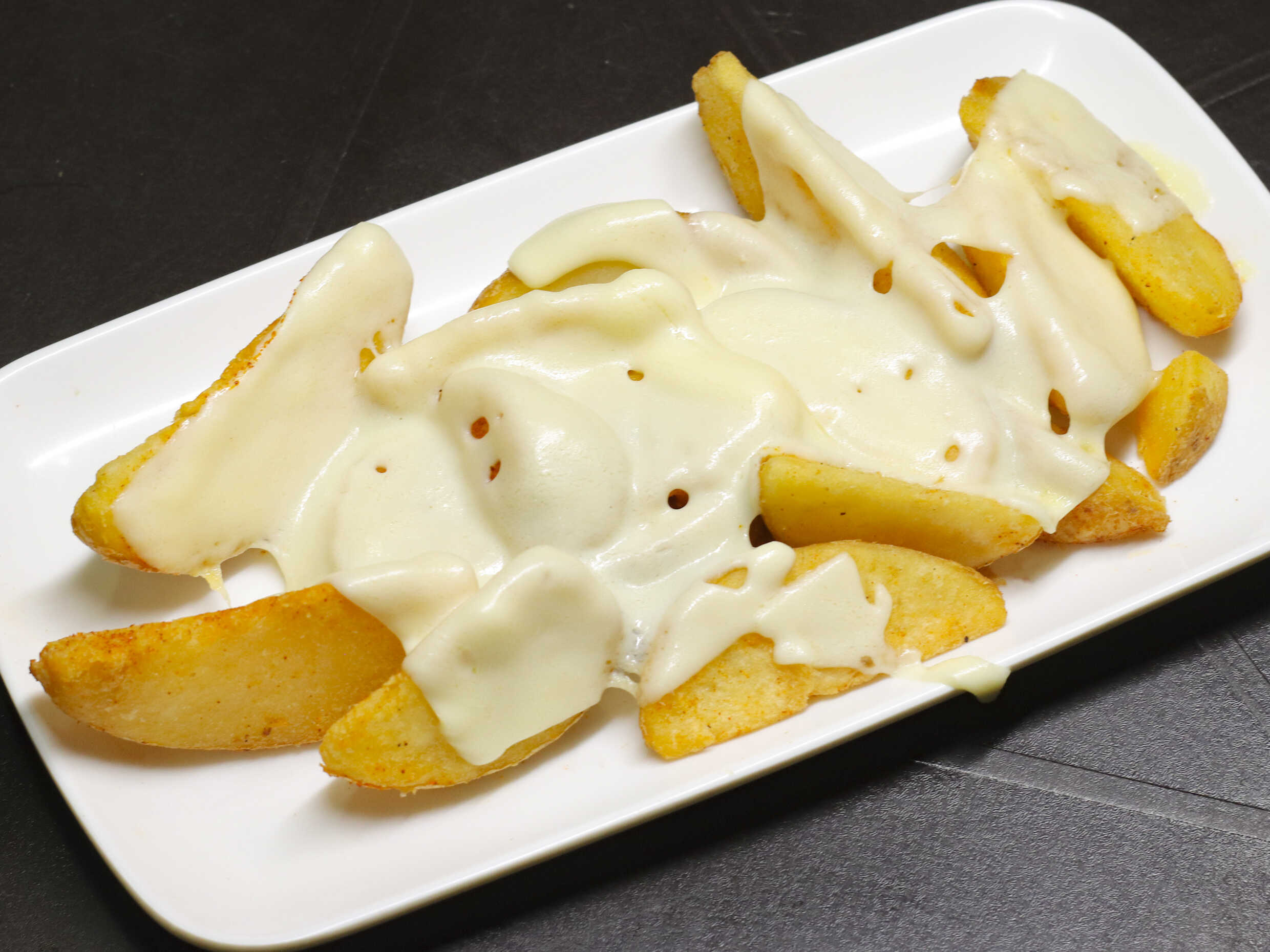 Papas a la francesa bañadas en queso cheddar derretido y tocineta crunchy.