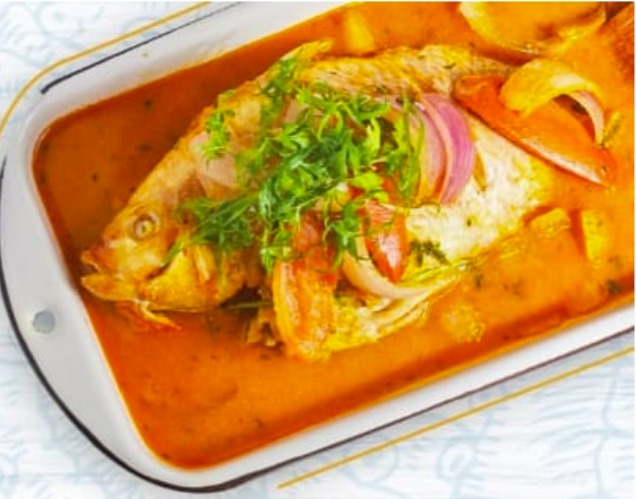 500 g De pescado frito con salsa de mariscos 160 g acompañado de arroz y yucas crocantes.