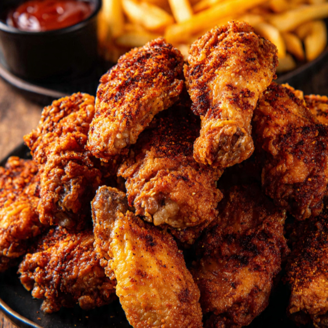 Las mejores alitas con nuestro apanado original, acompanadas o banadas en nuestras salsas, 1 salsa a su eleccion, acompañadas de papas a la francesa o cascos de papa.