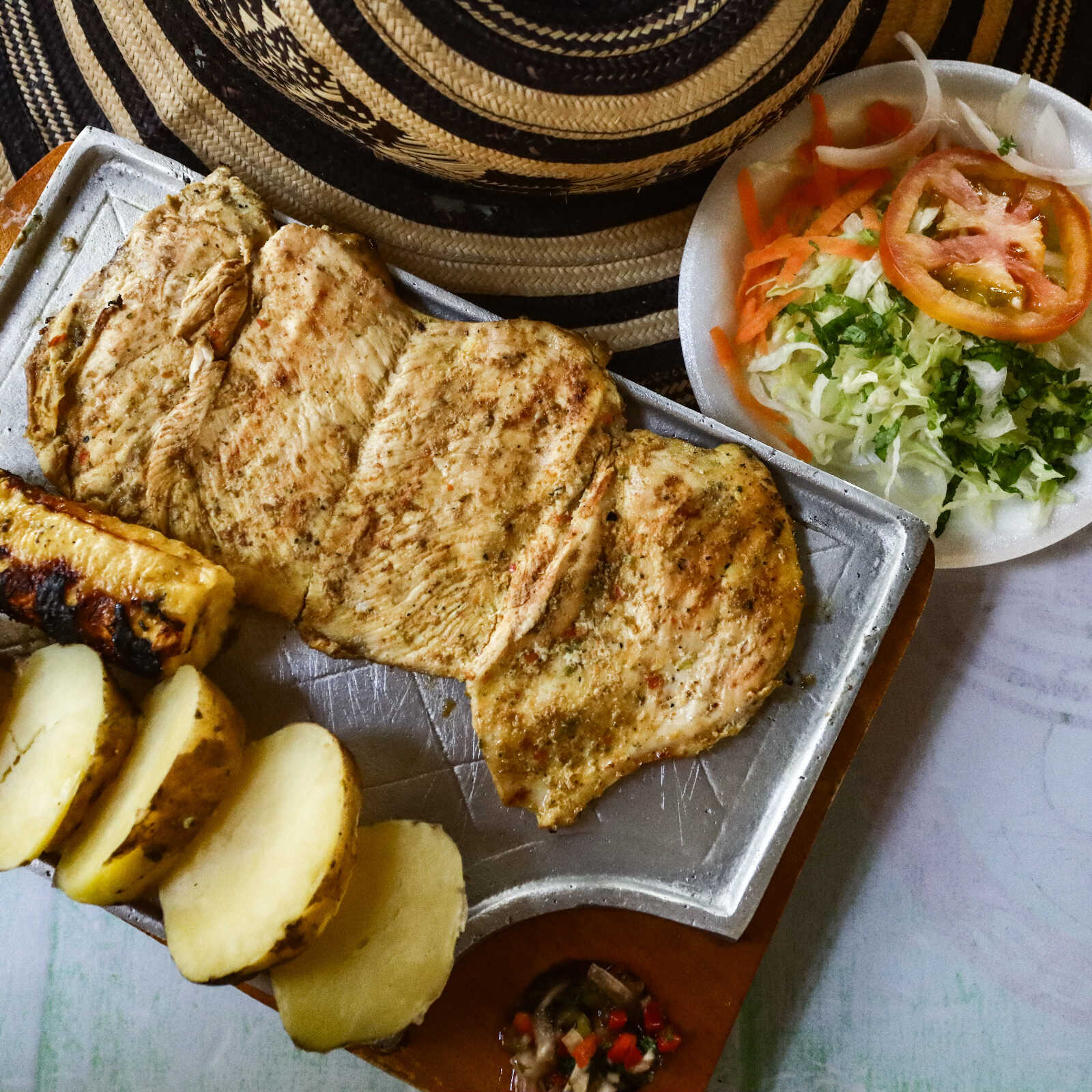 Acompañado de ensalada verde, papa, yuca o patacón.