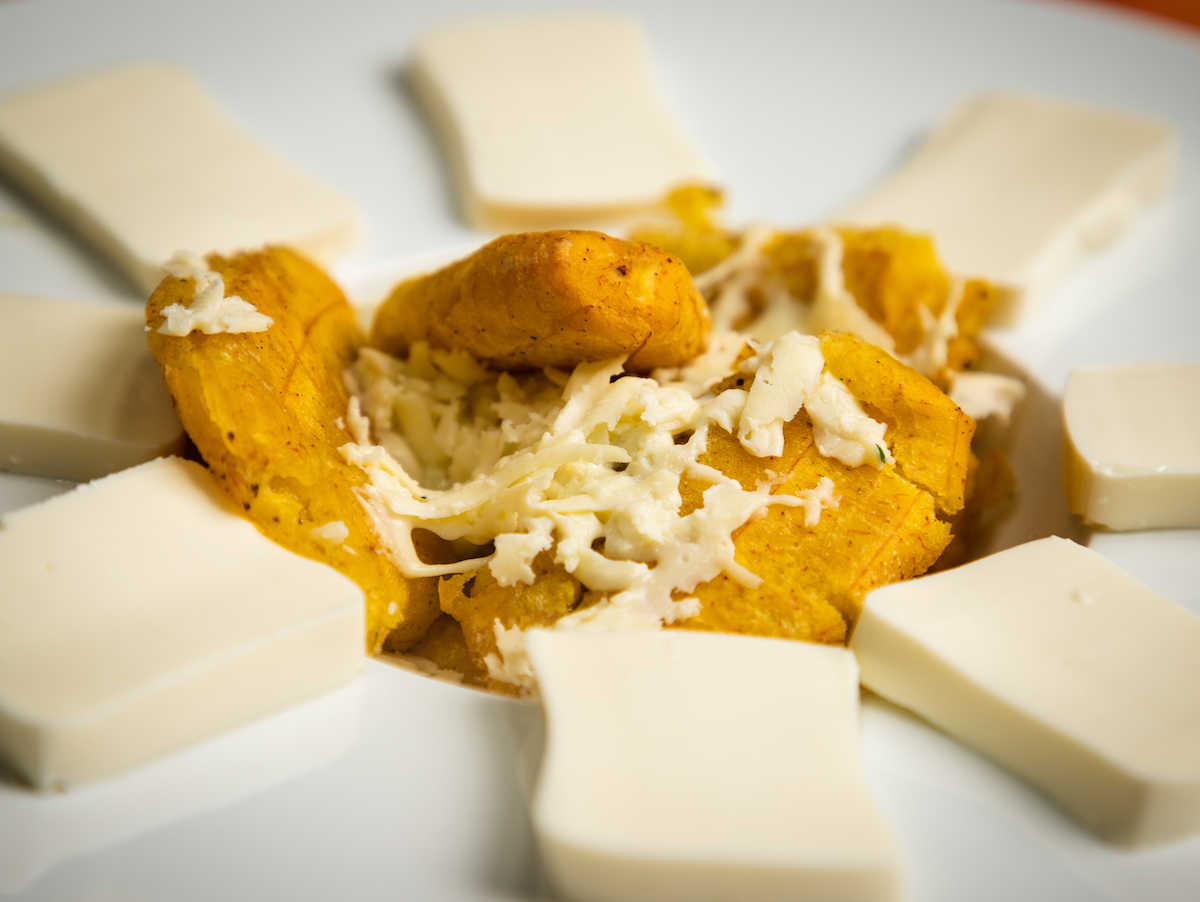 Ñame espino, acompañado de trozos de queso costeño, con hogao.