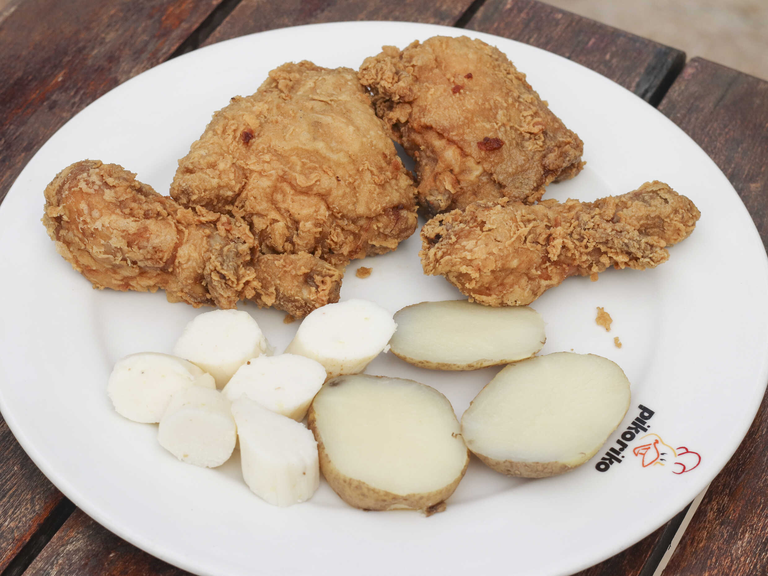 4 Presas de Pollo Broasted: Pídelo con cualquiera de estos acompañamientos (papas cocidas o bollo).