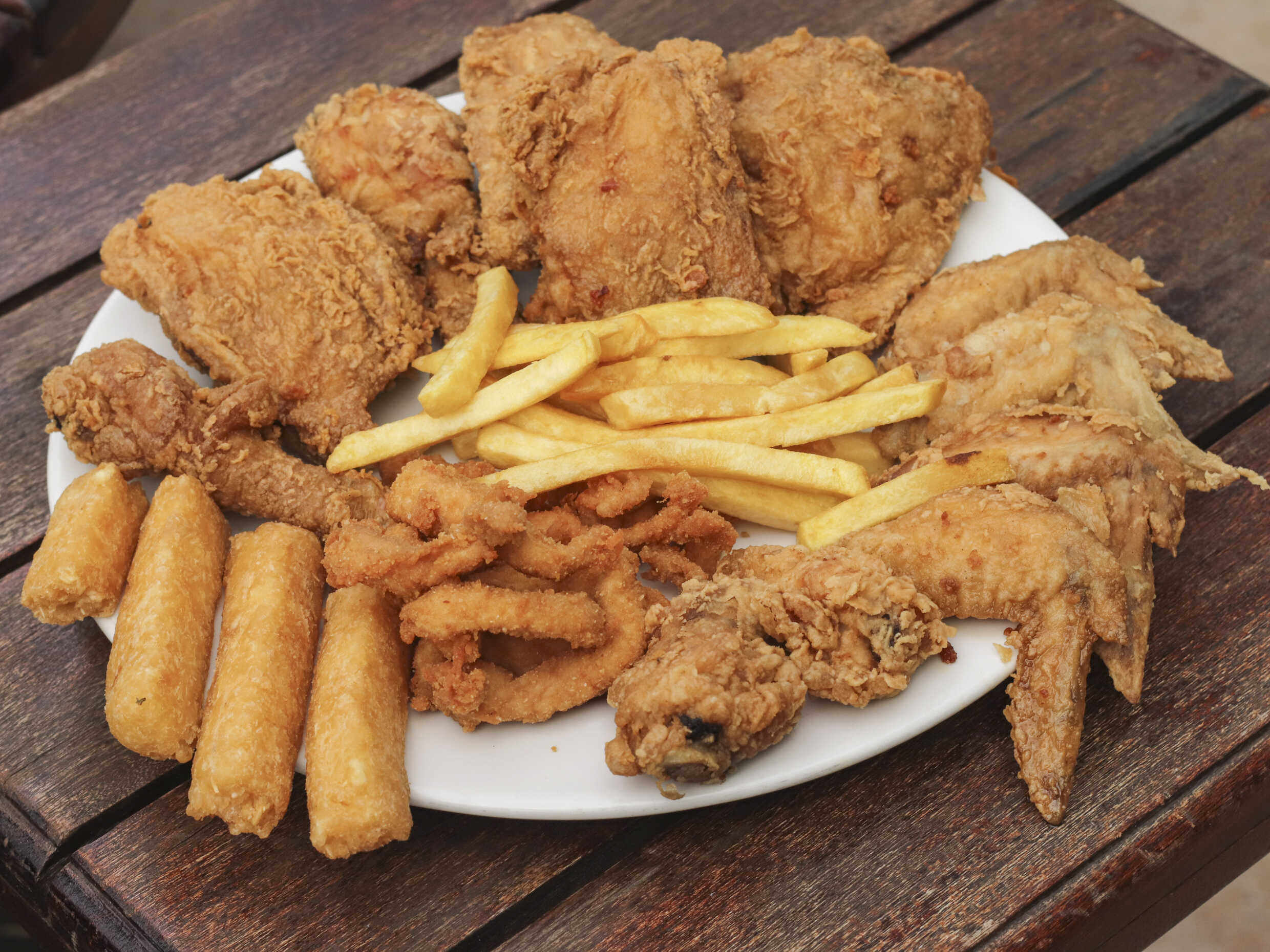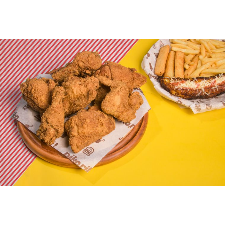 6 Presas de pollo Broaster, 6 alitas (1 alita equivale a 1/2 ala), 125 gr de lomitos, 4 yuquitas, papas a la francesa y gaseosa 1.5 L.