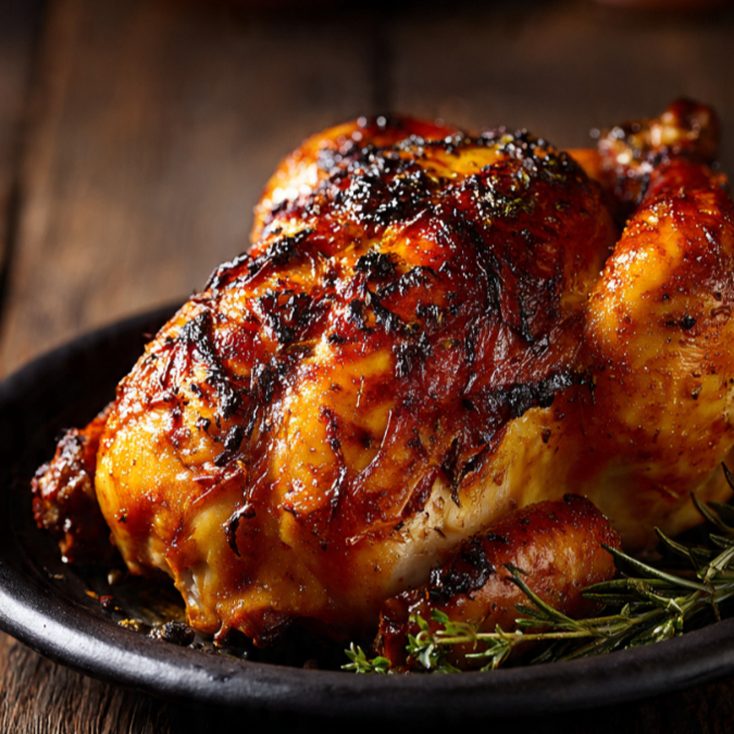 8 presas de pollo asado acompañado de papas a la francesas y gaseosa 1.5 L.
