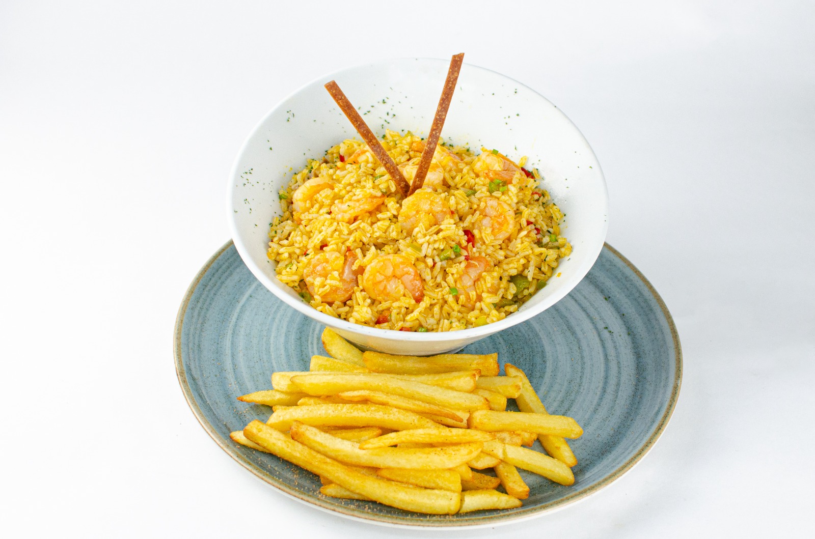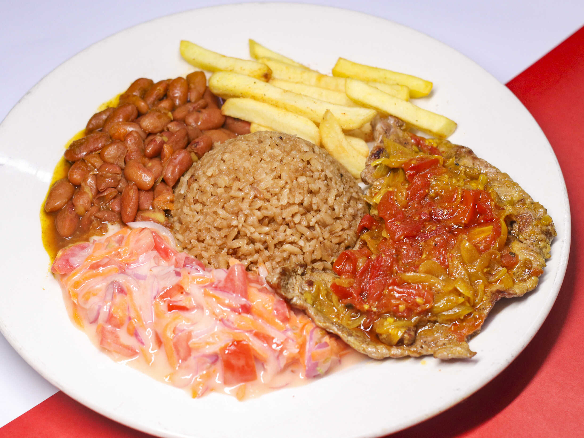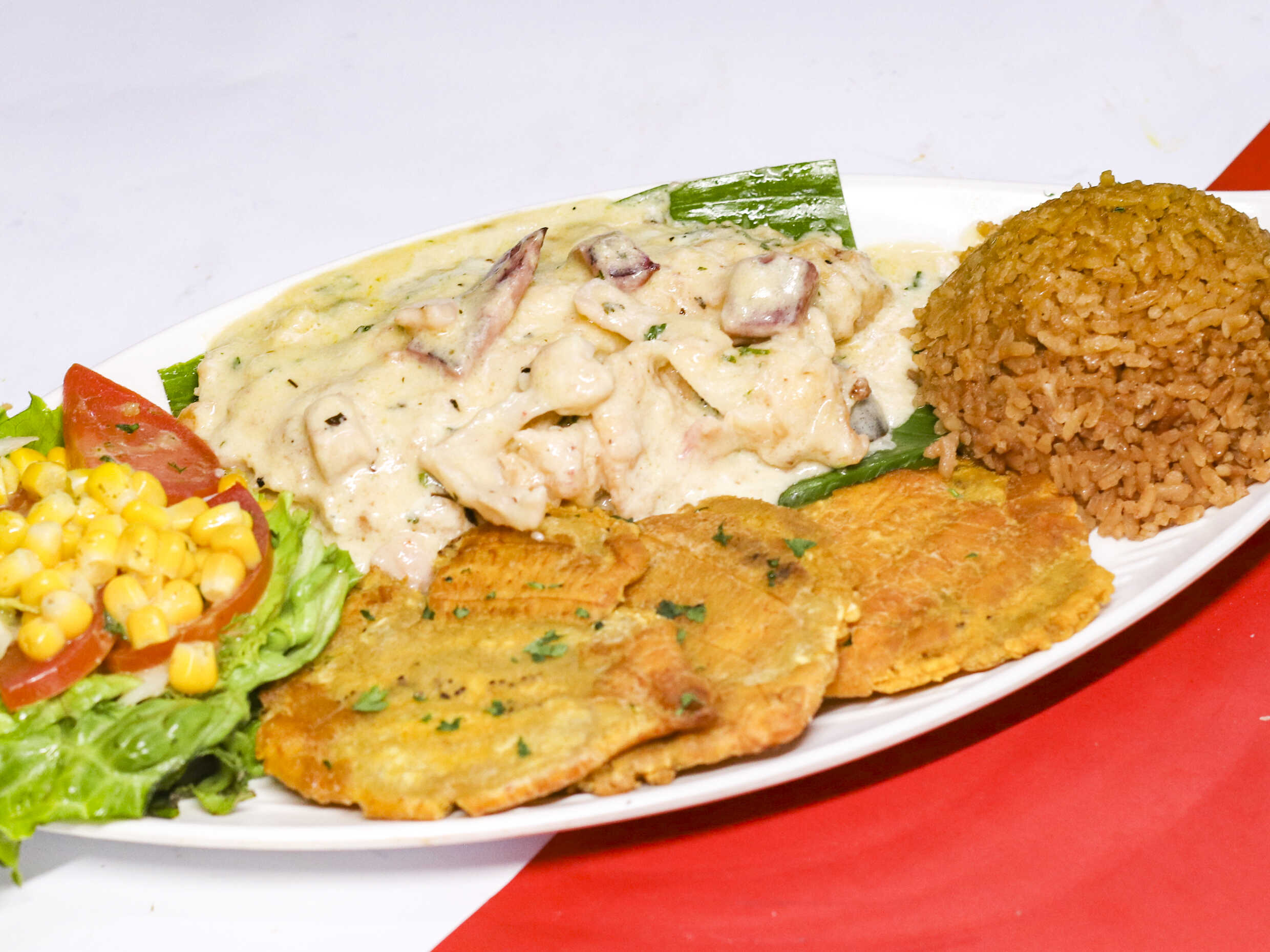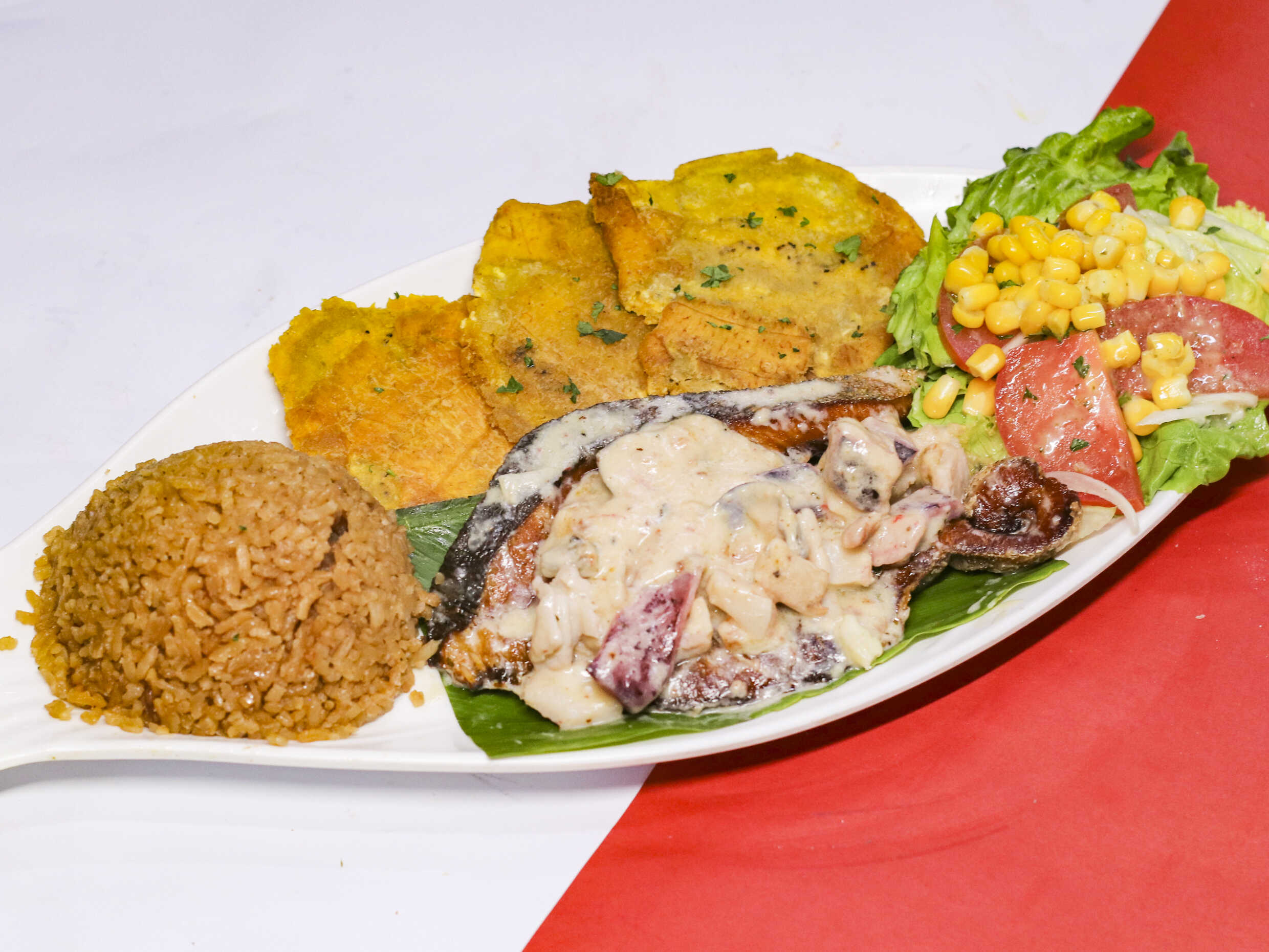 Lomito, pollo, chorizo, butifarra, jamón, tocineta, papas francesas, queso costeño, virutas de papa, salchicha manguera, lechuga, salsa tártara de la casa.