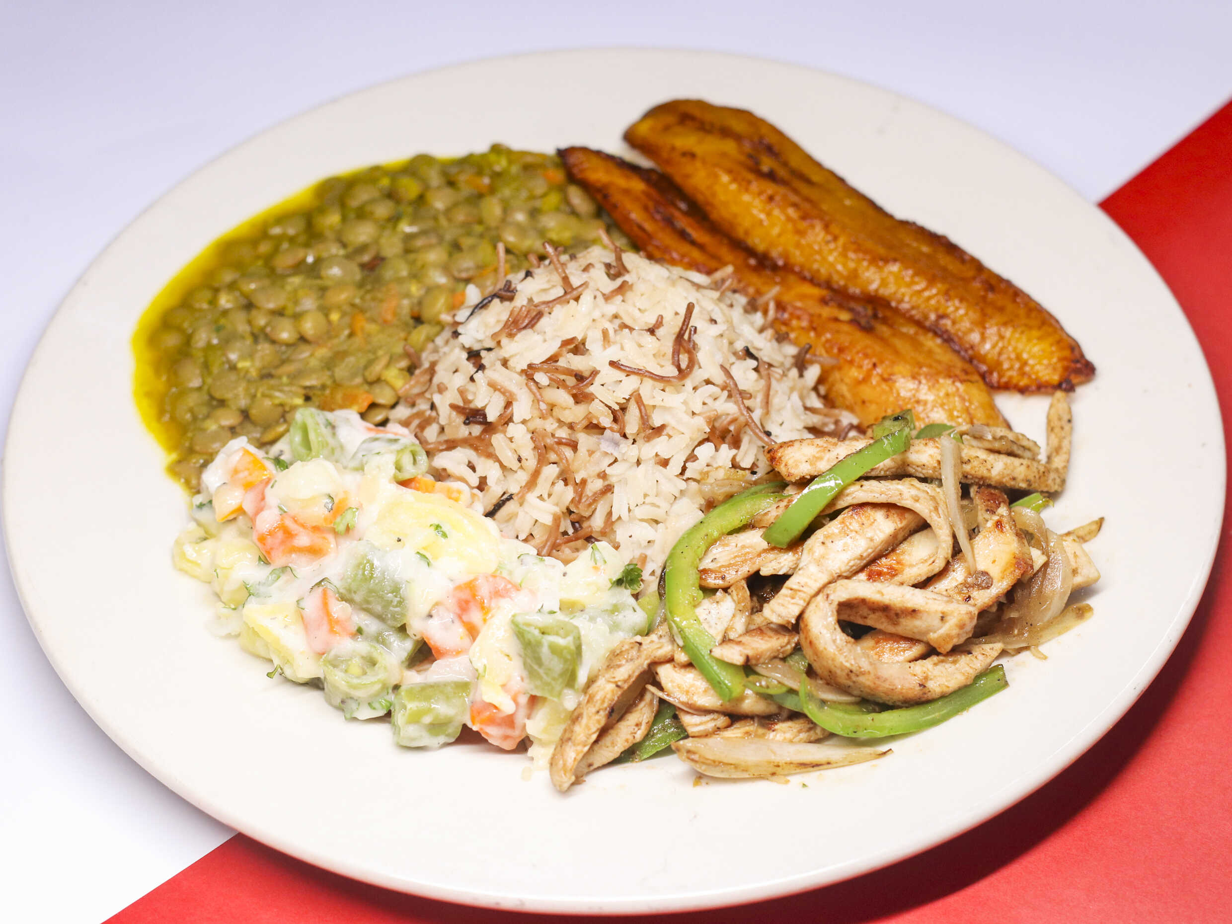150gr carne de res, Queso costeño sofrito,Tajadas Maduras, lechuga crespa, salsa de la casa