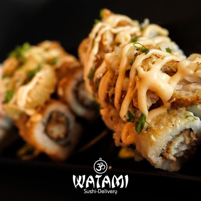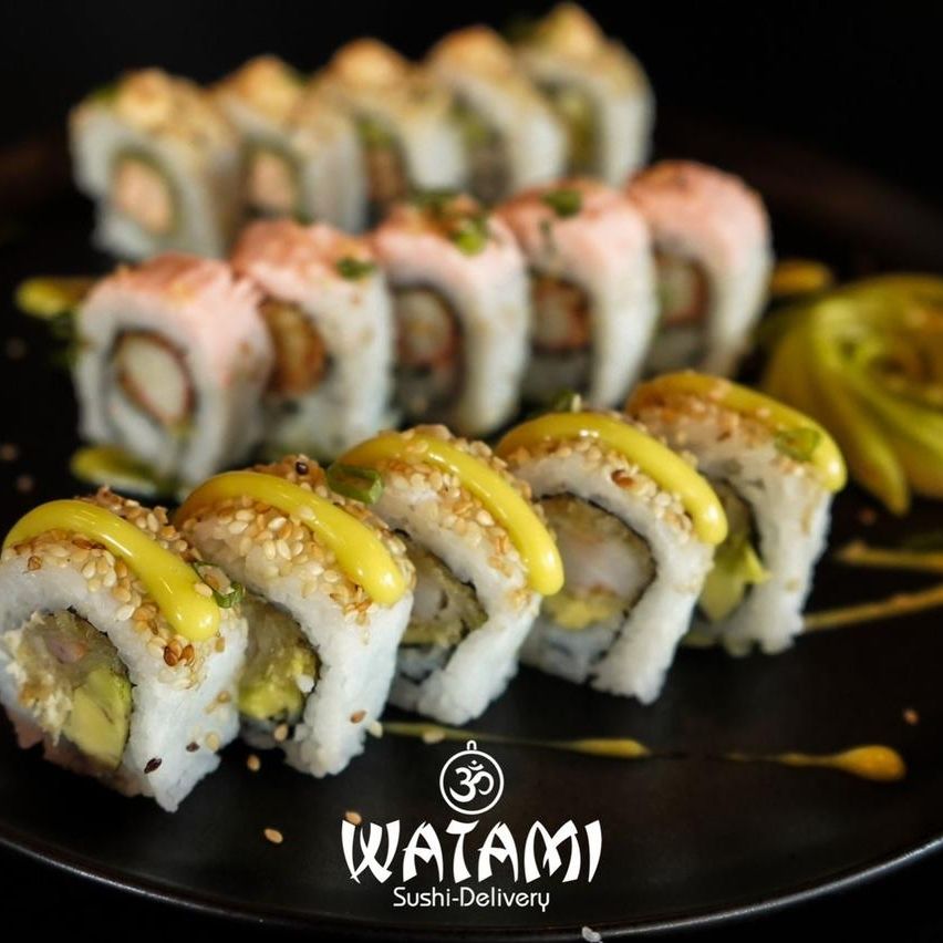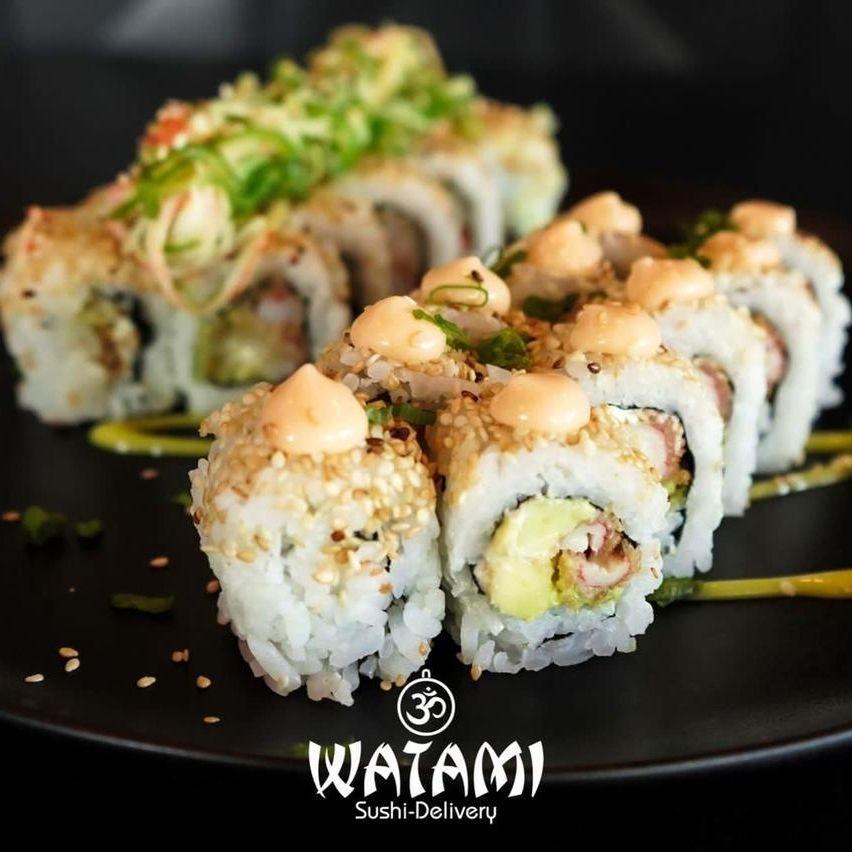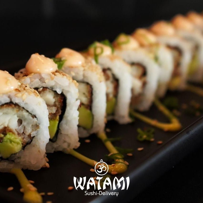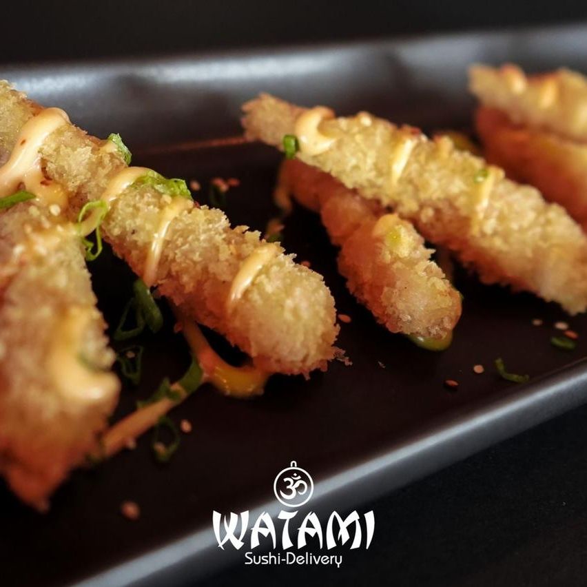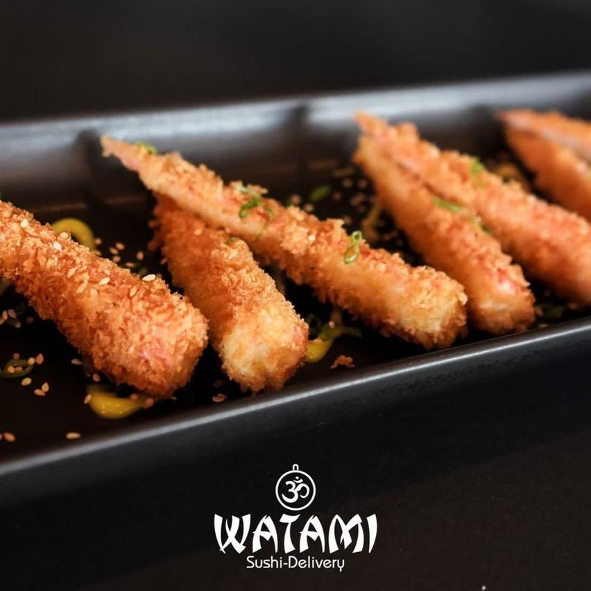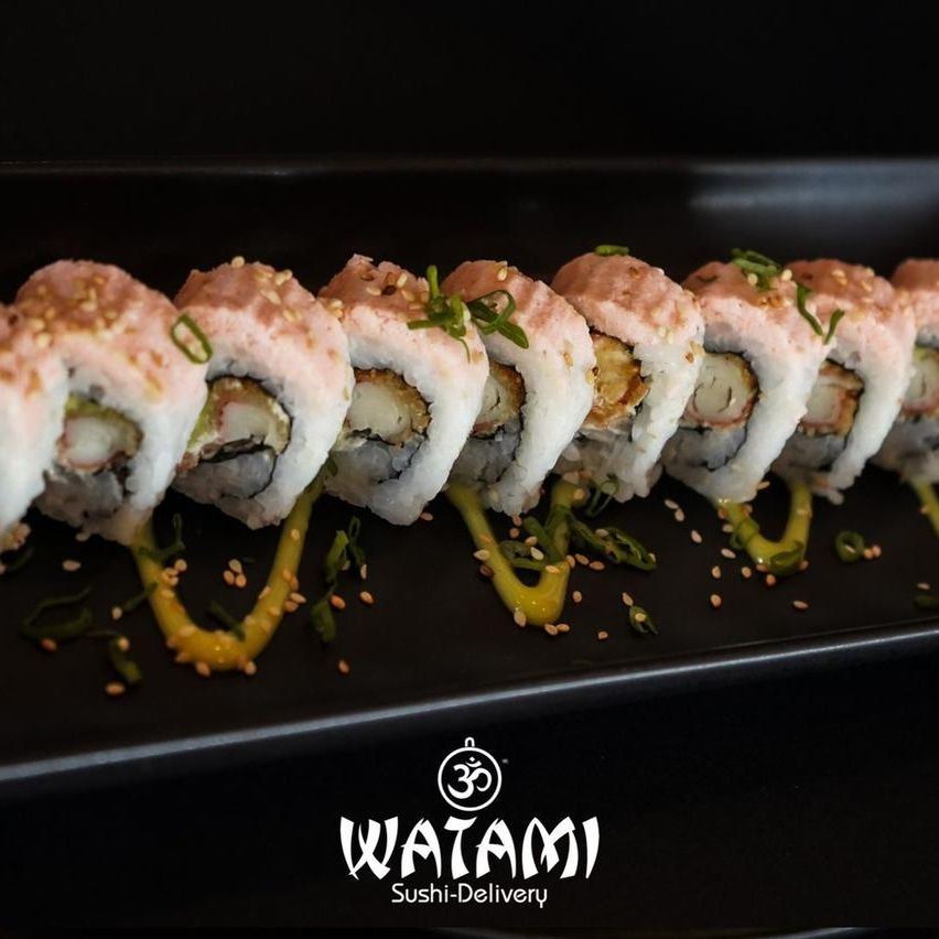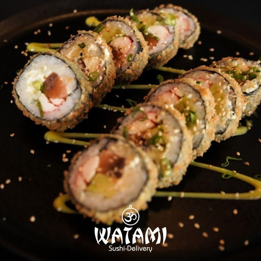 Maki con kanikama importado , langostinos apanados al panko , queso crema , aguacate , masago y ensalada watami especial.