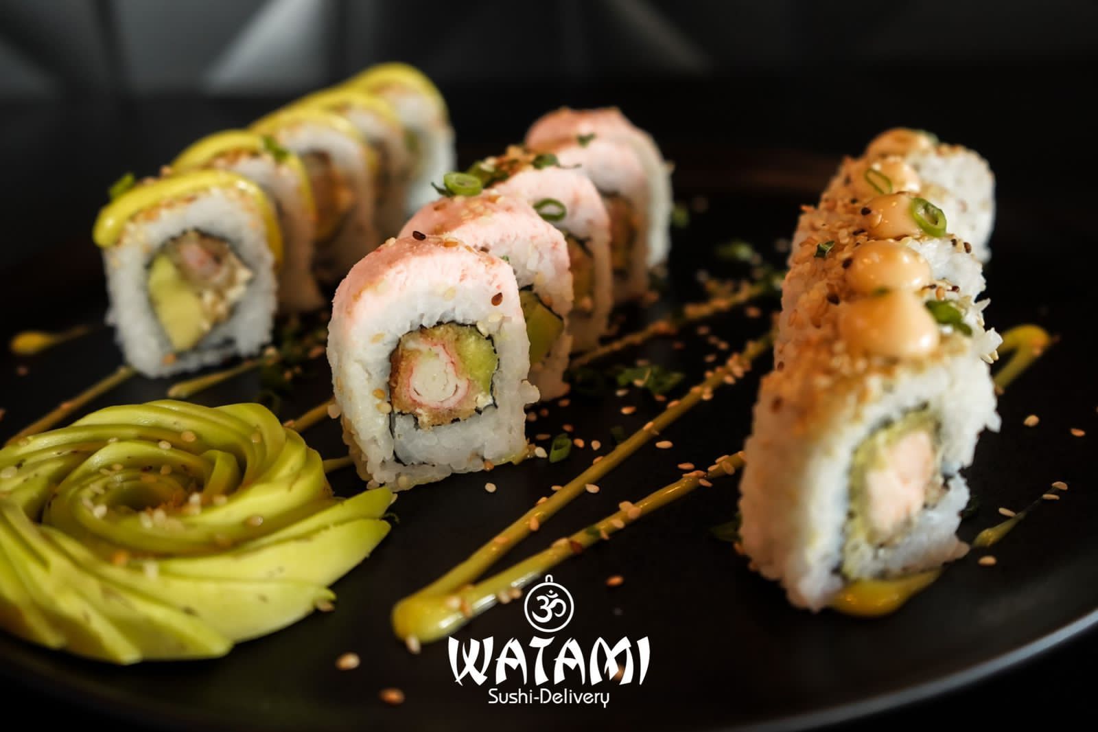 Una forma distinta de comer Sushi , en forma de perro! Este producto está hecho a base de arroz de sushi , queso Philadelphia, aguacate , con topping de Kanikama crocantes y salsas de la casa , es enviado con una bebida saborizada a manzana!