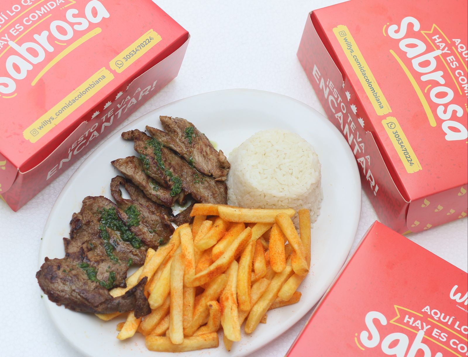 180 Gr de proteína, acompañado de arroz blanco y guarnición a elección, ensalada y salsas de la casa. .