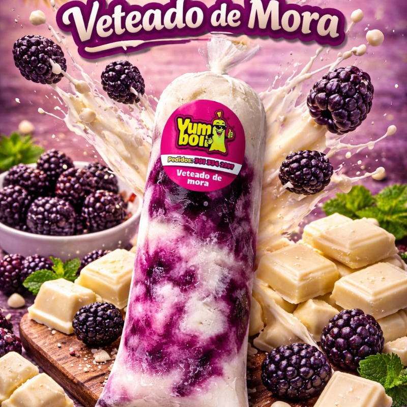 Deliciosa base de leche cremosa con vetas artesanales de mora silvestre para un sabor equilibrado.