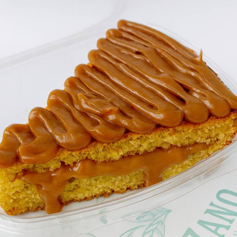 Brownie 100% en harina de almendras, cacao y chocolate sin azúcar, ghee, endulzado con stevia, topping de arequipe de almendras y almendras caramelizadas.la combinación perfecta entre crocante y melcochudo. .
