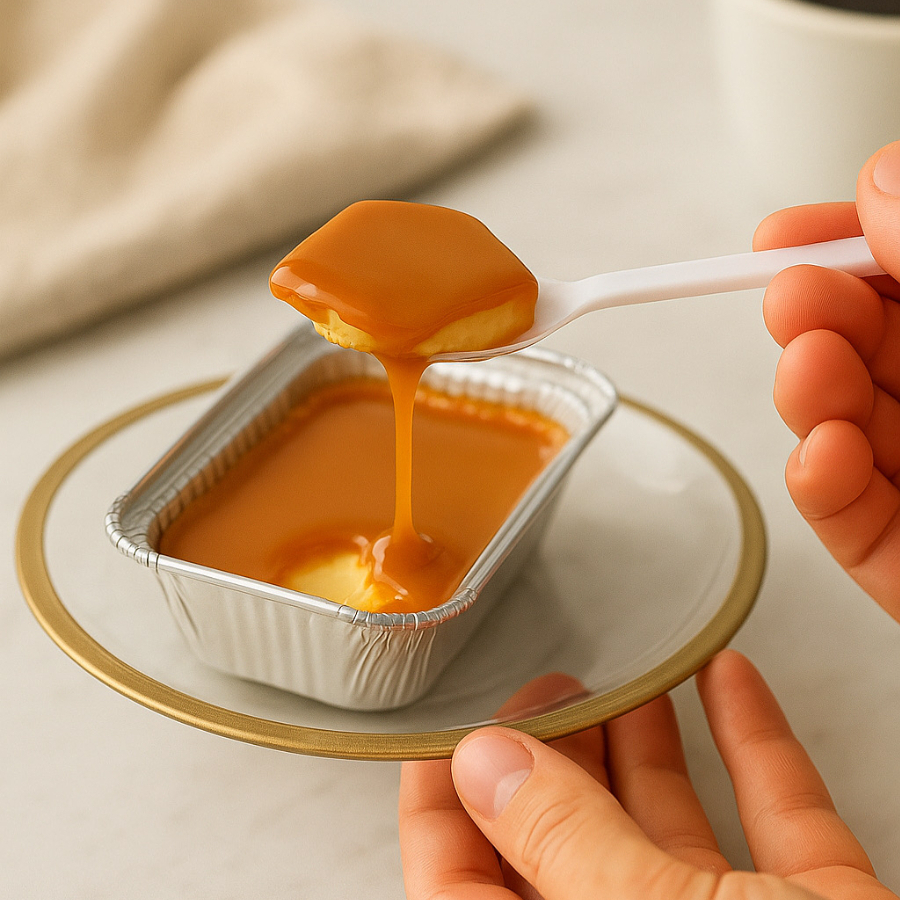 Delicioso flan libre de lácteos y sin azúcar añadida, arequipe de almendras y sin gluten. tamaño personal pequeño de 4oz