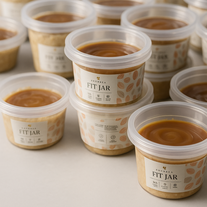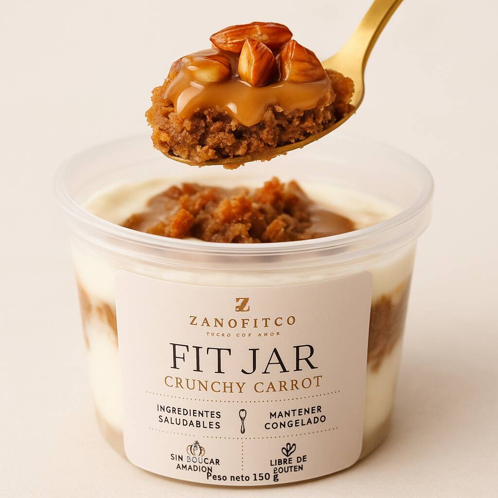 Irresistible fit jar de vainilla elaborado con avena sin gluten, arequipe de almendras, sin azúcar añadida, libre de lácteos. un postre húmedo y delicioso para disfrutar sin culpa.
